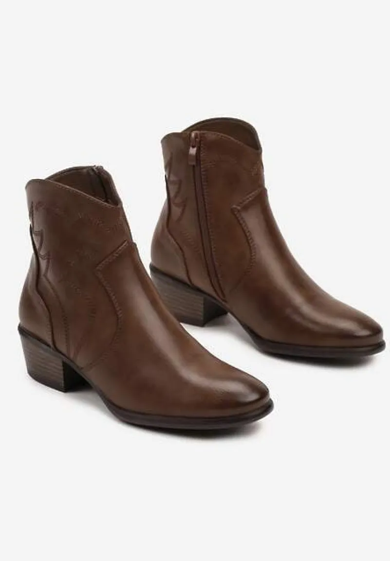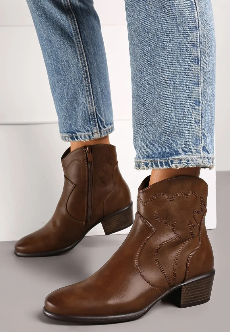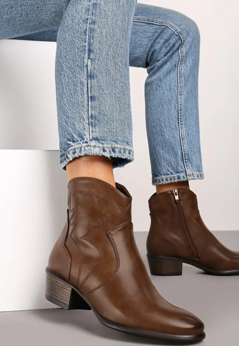 Stwórz wyrazisty look na każdą okazję z botkami kowbojkami Zinoreta na stabilnym obcasie typu słupek. Buty posiadają klasyczne zaokrąglone noski, które nadają im uniwersalnego charakteru oraz wygodne zapięcie na suwak ułatwiające zakładanie. Wpisują się w aktualne trendy dzięki subtelnej linii i ozdobnym przeszyciom. Na co dzień świetnie wyglądają w połączeniu z dzianinową sukienką i obszernym kardiganem, a na wieczorne okazje doskonale sprawdzą się z eleganckimi, taliowanymi spodniami i aksamitnym topem, które przełamią ich casualowy charakter.