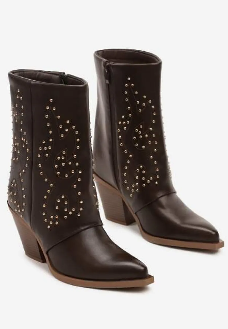 Botki typu kowbojki Vistaria to klucz do stylizacji z pazurem! Ze szpiczastym noskiem i stabilnym obcasem typu stożek, idealnie sprawdzą się zarówno na co dzień, jak i podczas wieczornego spotkania ze znajomymi. Wykończone błyszczącymi nitami, dodadzą charakteru każdej, nawet najprostszej stylizacji. W połączeniu z przylegającymi jeansami i luźnym swetrem stworzą look casualowy, a zestawione z elegancką sukienką i skórzaną ramoneską – niepowtarzalny outfit na specjalne okazje. Musisz je mieć!