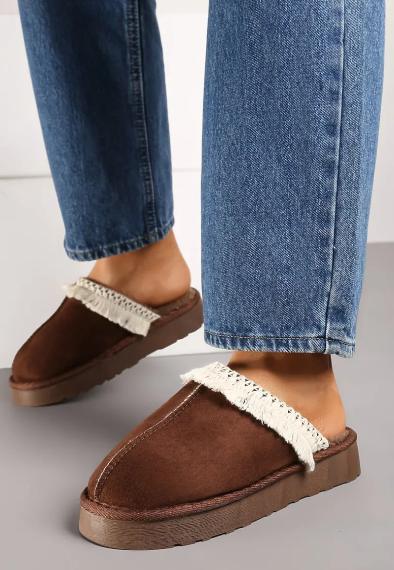 Odkryj look z Kapciami na Platformie Vertiala, które są must-have’ami w każdej kobiecej garderobie. Platforma zapewni stabilność przy każdym kroku, a haftowana cholewka dodaje szyku — idealne na chłodniejsze dni. Brak zapięcia gwarantuje łatwość w zakładaniu i zdejmowaniu. Możesz je założyć do casualowych, długich swetrów lub stylizacji z eleganckimi, palazzo spodniami dla kontrastu między domowym ciepłem a miejską elegancją.