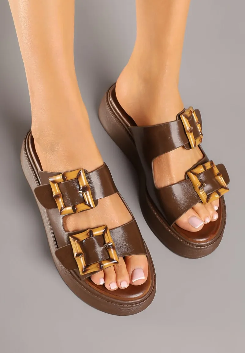 Odkryj wyjątkowe klapki na niskiej platformie Nilanoria, które dodadzą charakteru każdej stylizacji! Zdobione efektownymi klamrami z imitacji drewna, te buty łączą w sobie modowy sznyt i komfort noszenia. Idealne na każdą okazję, świetnie skomponują się z lnianym kompletem z koszulą i szortami na co dzień lub z elegancką sukienką i torebką na ramię, tworząc zestaw idealny na kolację czy imprezę. Musisz je mieć!