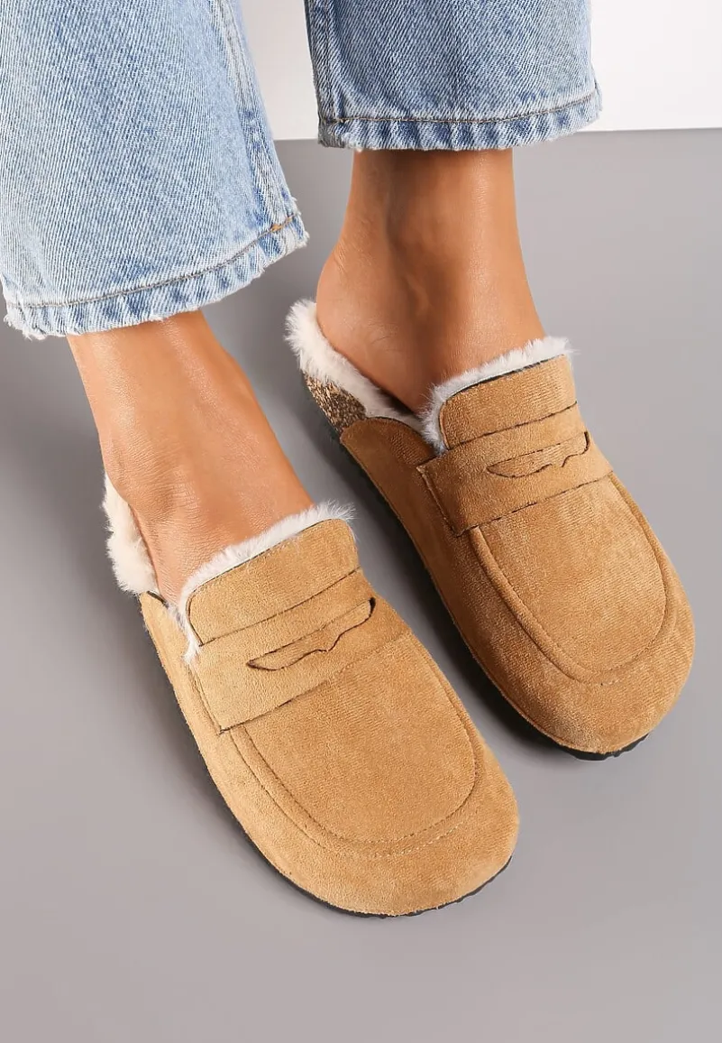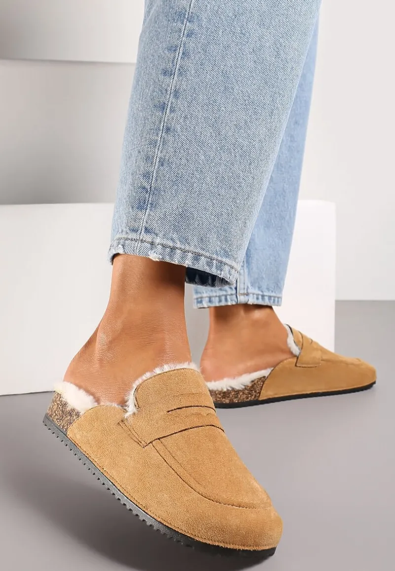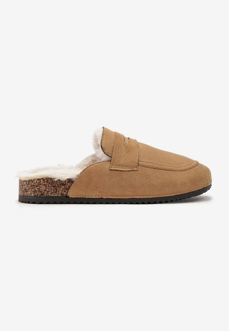 Klapki Sileath na płaskiej podeszwie z korkowym wykończeniem. Wykonane z ekozamszu, wewnątrz ocieplanego miękkim futerkiem. To wygodny i ciepły dodatek, którego nie może zabraknąć w Twojej garderobie!