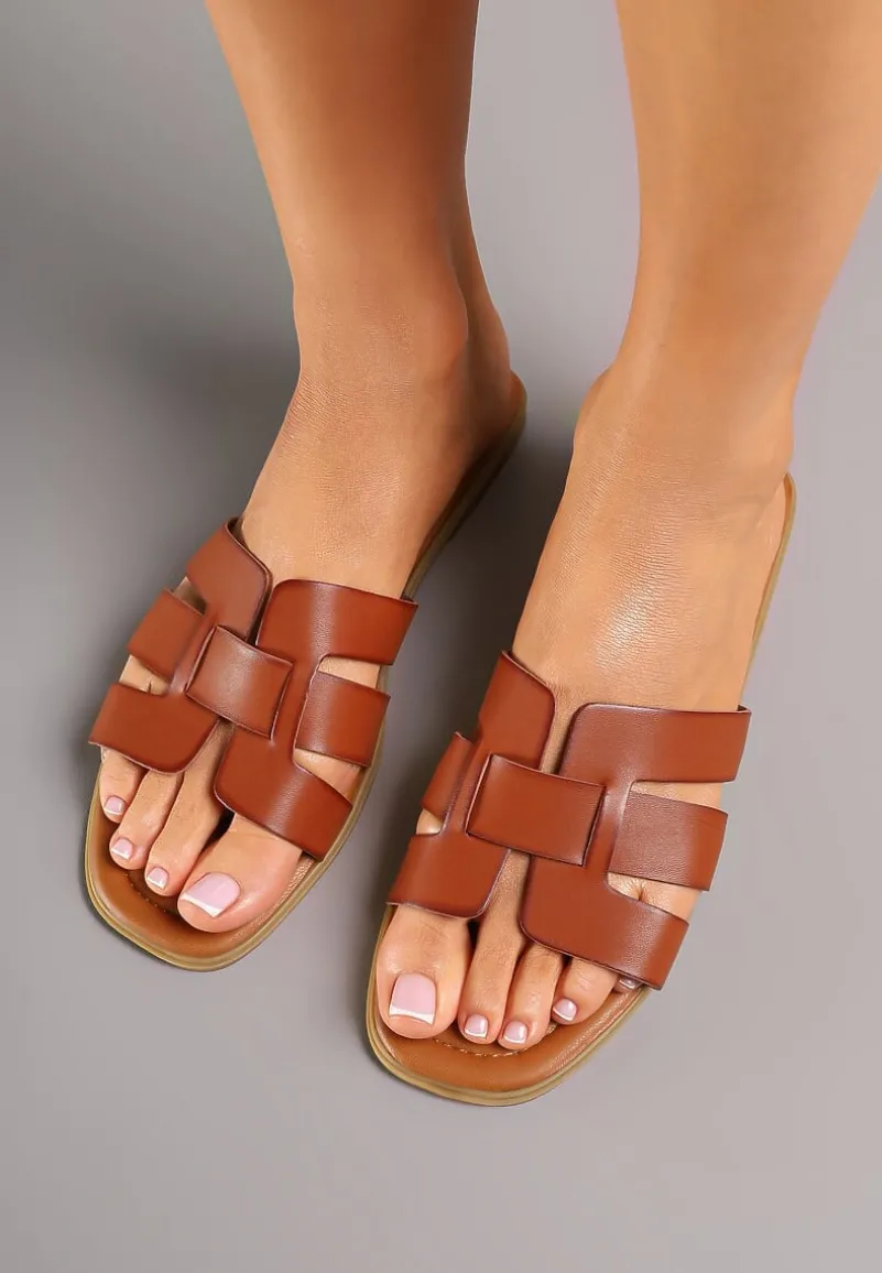 Klapki z Przeplatanymi Paskami i Kwadratowym Noskiem Filiela to idealny wybór dla wszystkich kobiet, które pragną wyglądać stylowo w każdej sytuacji. Te eleganckie klapki, osadzone na płaskiej podeszwie, wyróżniają się unikalnym, kwadratowym noskiem oraz unikalnym fasonem, który doda lekkości każdemu strojowi. Stylowe przeplatane paski doskonale skomponują się z letnimi sukienkami czy zwiewnymi spódnicami, a także z casualowymi szortami i T-shirtem na co dzień. Na formalne wyjście zestaw je z elegancką sukienką midi i torebką na ramię — efekt wow gwarantowany!
