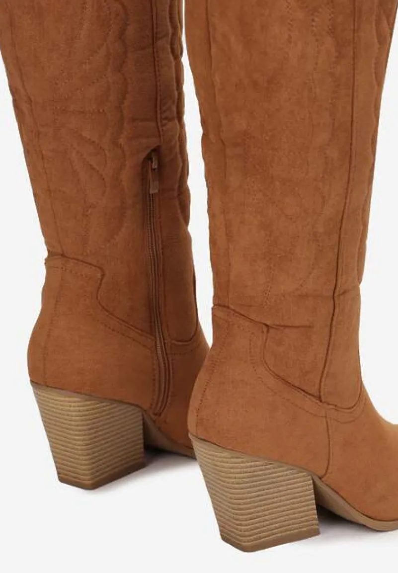 Kozaki kowbojki z haftem na stożkowym obcasie Virve to kwintesencja wyrazistego stylu, który przyciągnie wzrok w każdej sytuacji. Stożkowy obcas dodaje elegancji i sprawia, że buty te doskonale wpisują się w modowe trendy. Zapięcie na zamek ułatwia zakładanie, a haftowane wzory dodają niepowtarzalnego uroku każdej stylizacji. Na co dzień zestaw je z jeansami i skórzaną kurtką, a wieczorem z elegancką sukienką i subtelną biżuterią, aby stworzyć look pełen pewności siebie.