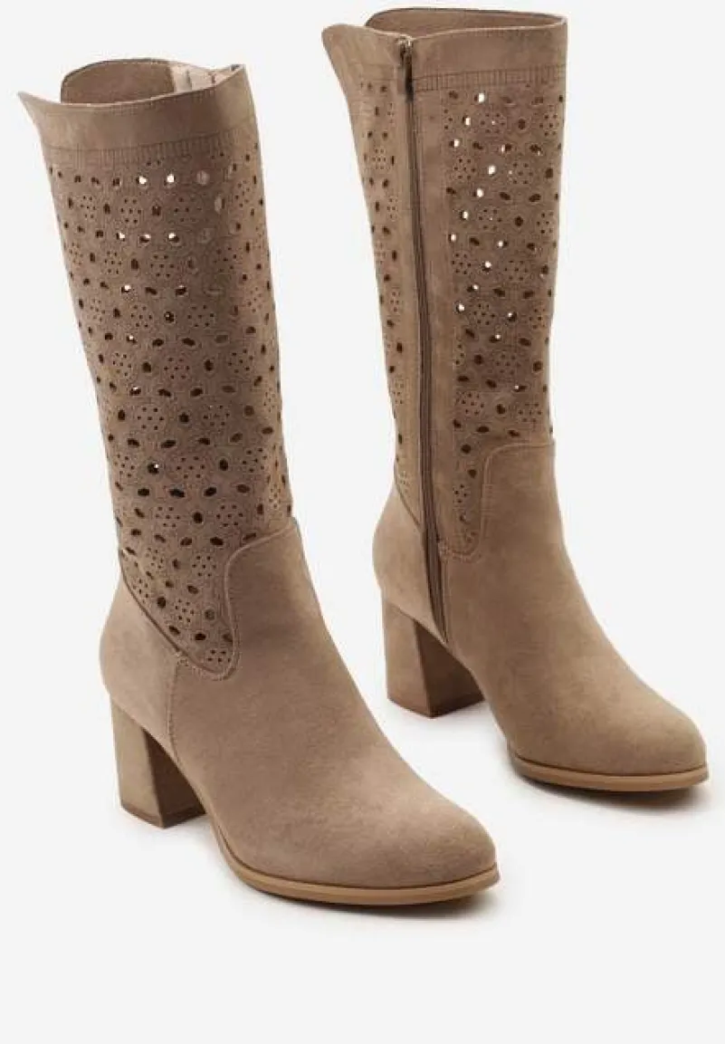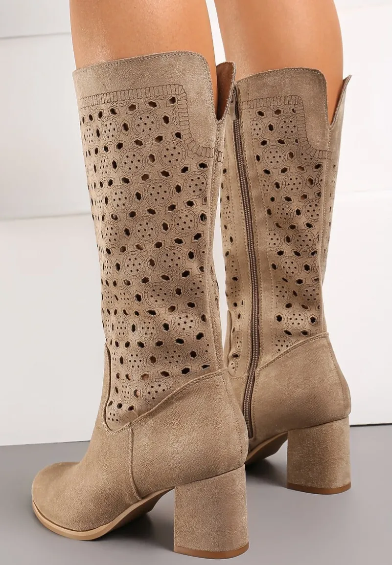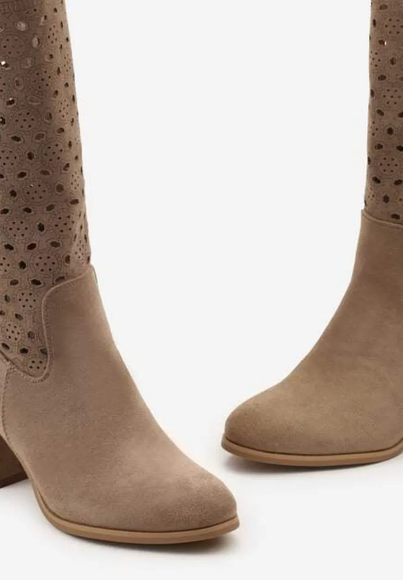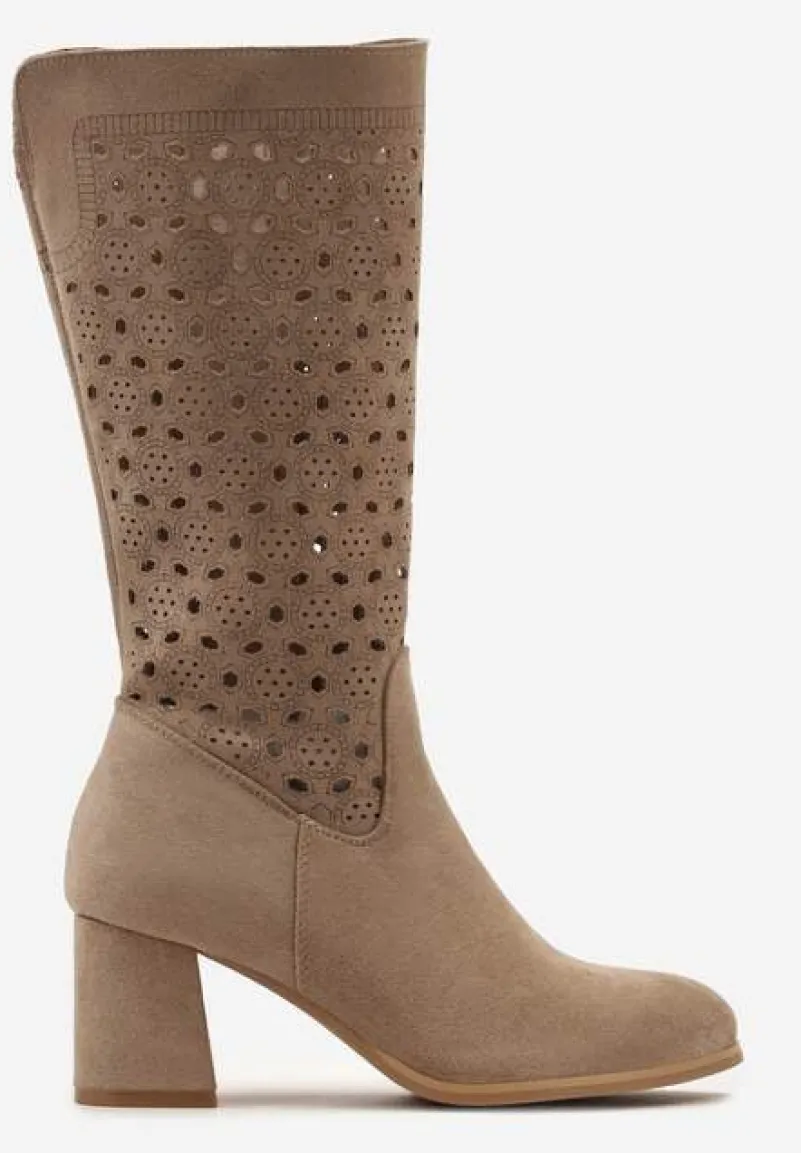 Kozaki Lelandine to esencja kobiecości i elegancji ukryta w każdym detalu – od wygodnego, stabilnego obcasa, po subtelne ażurowe zdobienia nadające charakteru. Naturalna skóra wewnętrznej wkładki zapewnia komfort na każdym kroku. Zaokrąglony nosek dodaje klasy, a zapięcie na suwak ułatwia zakładanie. Stylowe kozaki, które świetnie skomponują się z dzianinową sukienką i płaszczem na co dzień, a wieczorową porą z dopasowaną sukienką koktajlową i elegancką biżuterią.