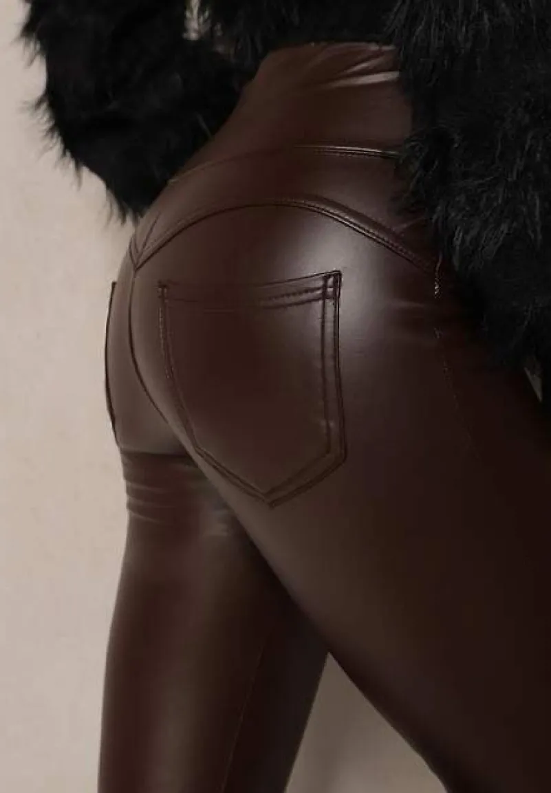 Podkreśl swoją sylwetkę z miejskiego szyku do wieczorowej elegancji z legginsami Salabria! Wyższa talia modeluje talię, a imitacje kieszeni dodają im praktycznego uroku. Idealne do długiej koszuli na co dzień lub eleganckiego topu, gdy szykujesz się na wieczorne wyjście. Materiał imituje skórę. To must-have sezonu dla każdej fanki miejskiego stylu.