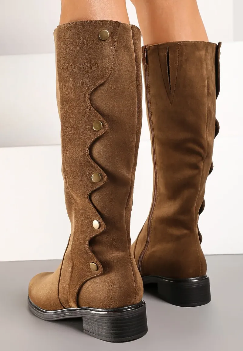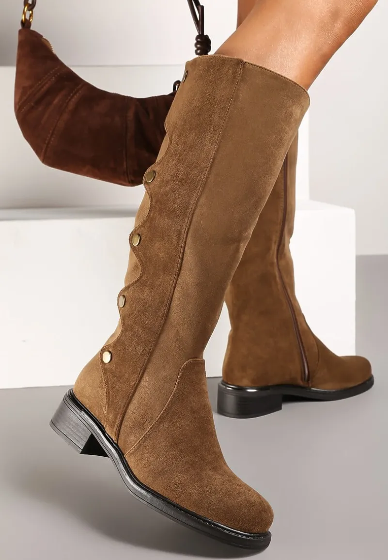 Przedstawiam kozaki Zinetia, które połączą styl z najnowszymi trendami. Płaski obcas gwarantuje stabilność. Te kozaki z napami ubierz zarówno do codziennych outfitów z jeansami i oversize’owym swetrem, jak i na szczególne okazje, tworząc zestaw z eleganckim, długim płaszczem.