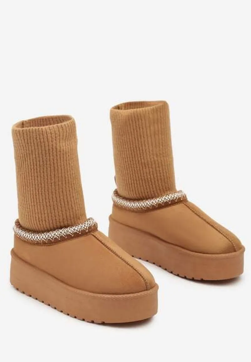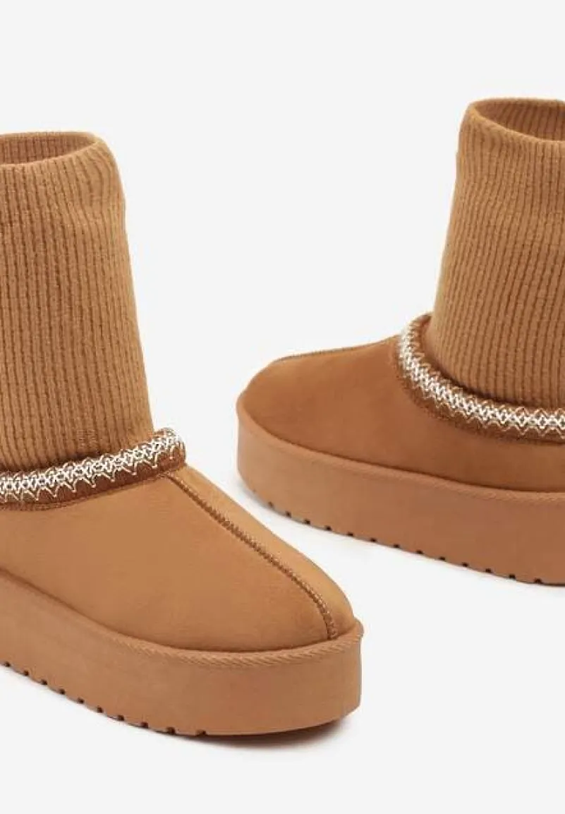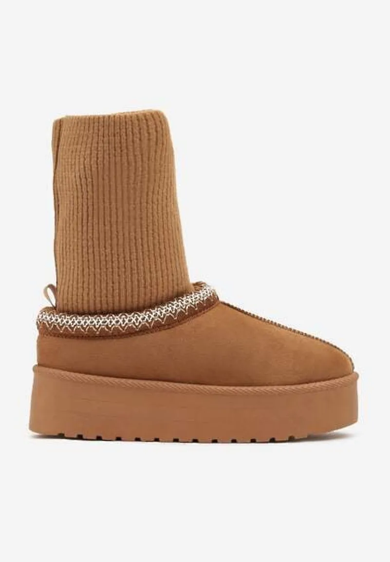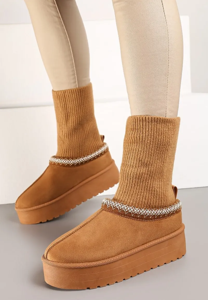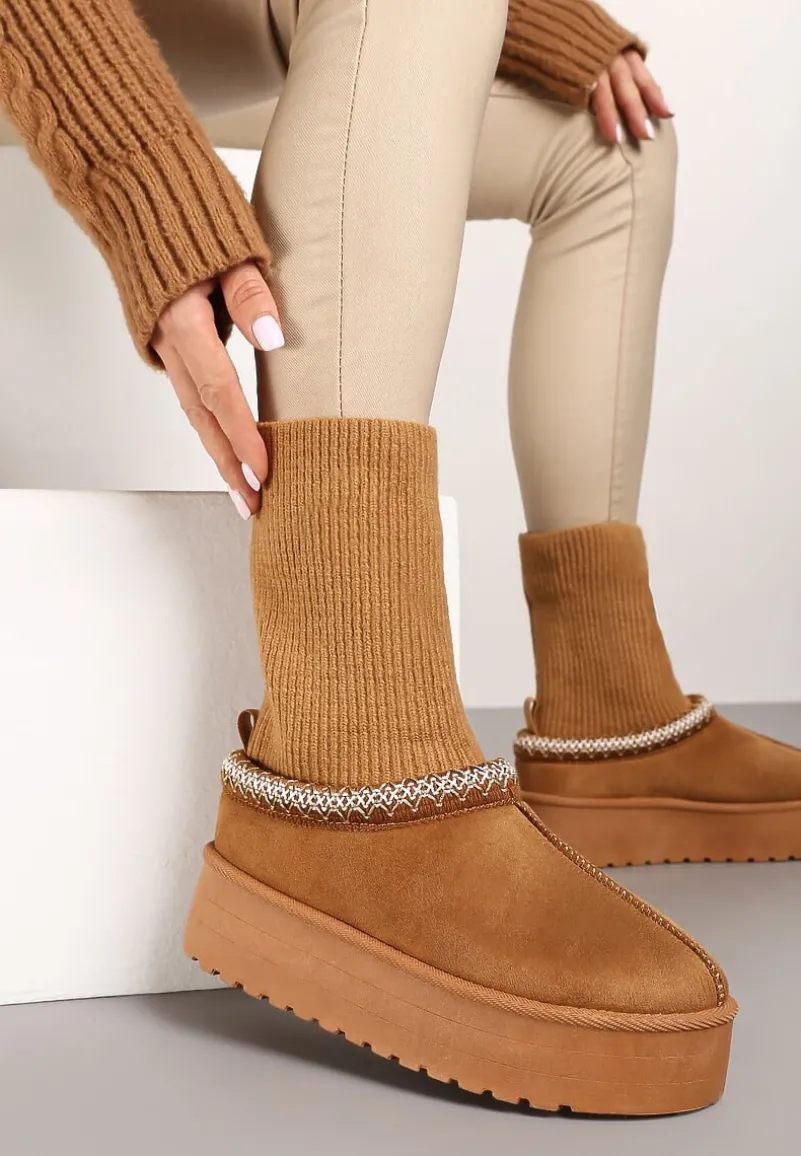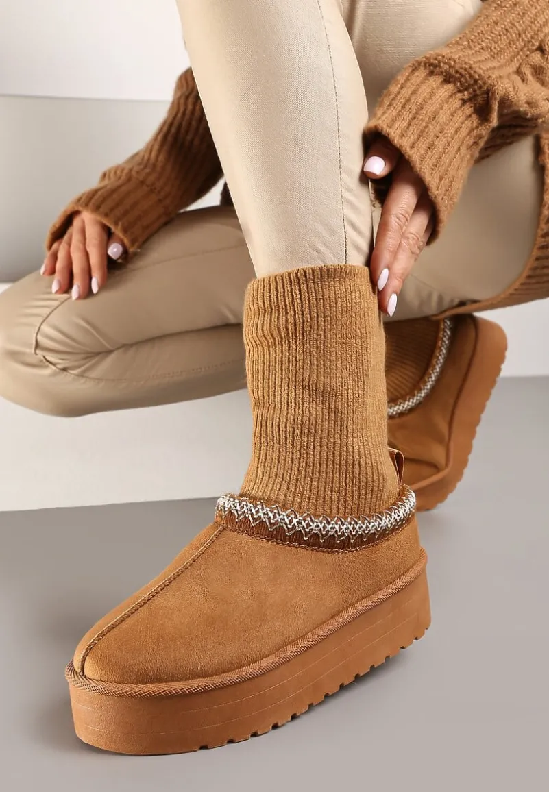 Śniegowce Tinnacilia to absolutny must-have dla kobiet, które uwielbiają połączenie mody i funkcjonalności. Stabilny obcas typu platforma gwarantuje komfort noszenia, a futrzana wyściółka chroni przed zimnem. Skarpetkową cholewkę zdobią finezyjne haftowane obszycia, dodając butom unikalnego charakteru. Zaokrąglony nosek i wsuwany fason ułatwiają zakładanie, a wszechstronny design pasuje do wielu stylizacji. Na co dzień noś je z jeansami i oversizowym swetrem, a na wieczorne wyjście zestaw je z dzianinową sukienką, aby stworzyć niebanalny i stylowy zimowy zestaw.