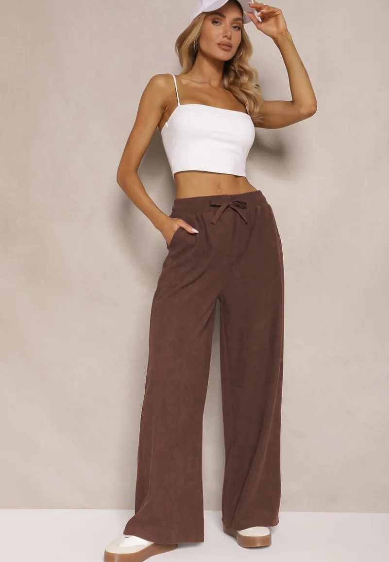 Spodnie Ettianne w modnym szerokim kroju to must-have dla każdej trendsetterki. Wysoki stan podkreśli Twoją talię, a eleganckie wiązanie dodaje szyku każdej stylizacji. Idealne na co dzień do luźnych bluzek i sneakersów, jak również na wieczorne wyjścia w połączeniu z szykowną bluzką i szpilkami.