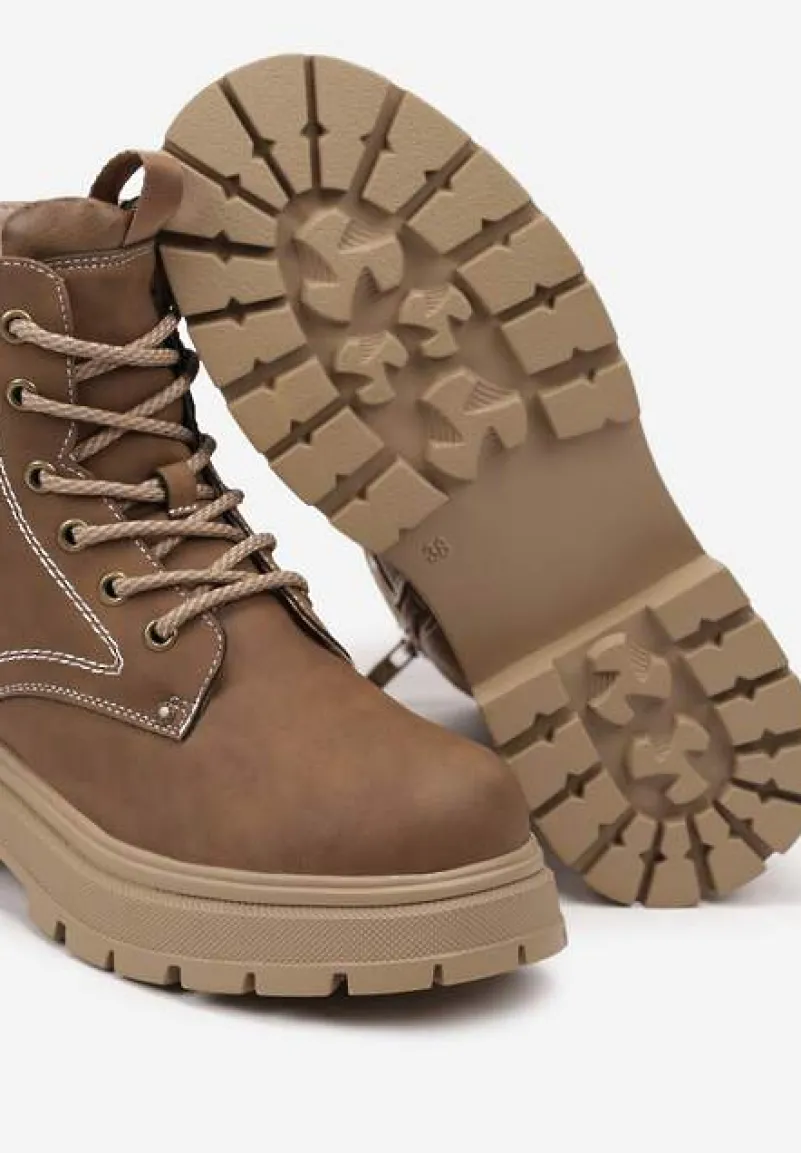 Botki Cleida na suwak w stylu workerów to esencja miejskiego looku, idealna dla dziewczyn, które kochają połączenie wygody z modnym designem. Płaski obcas gwarantuje stabilność. Noski butów zaokrąglone, a klasyczne sznurowanie dodaje charakteru oraz zapewnia indywidualne dopasowanie. Wyobraź sobie te botki jako kluczowy element stylizacji na weekendowy wypad z przyjaciółmi – załóż je do zgrabnych, ciemnych jeansów, oversize’owej kurtki i wyruszaj na podbój ulic! Gdy nadejdzie czas na bardziej uroczyste okazje, postaw na połączenie z elegancką, dzianinową sukienką i błyszczącymi dodatkami.