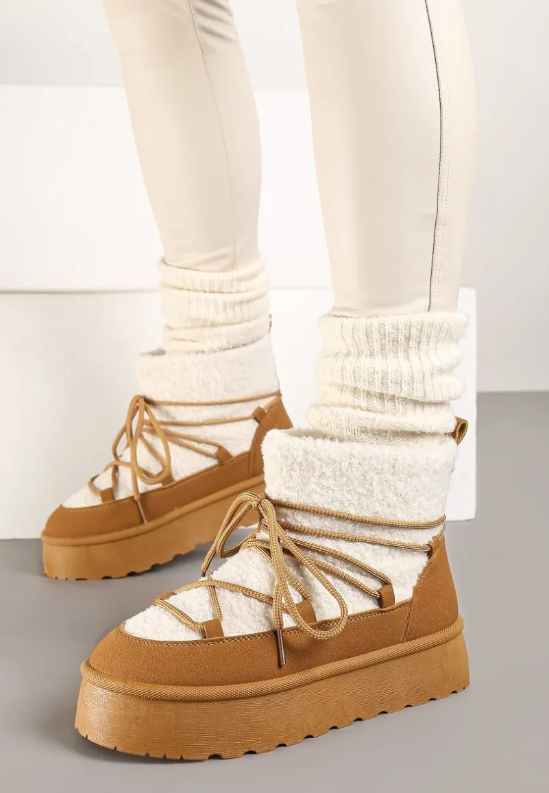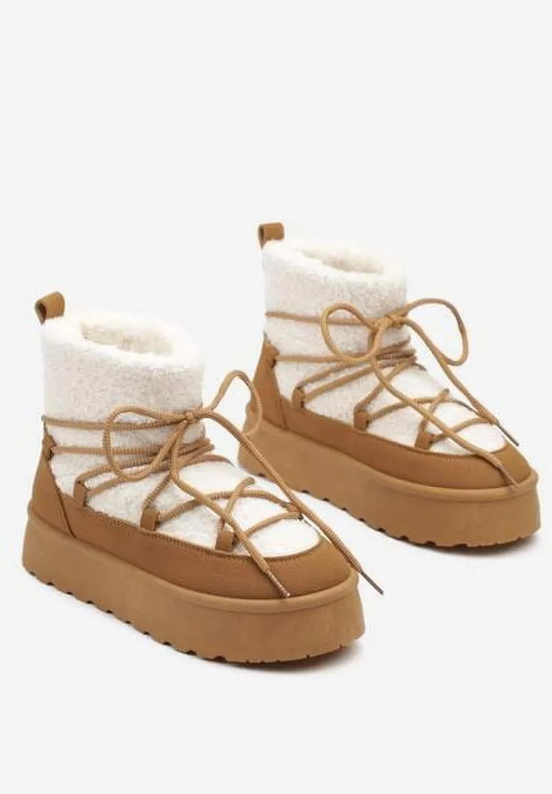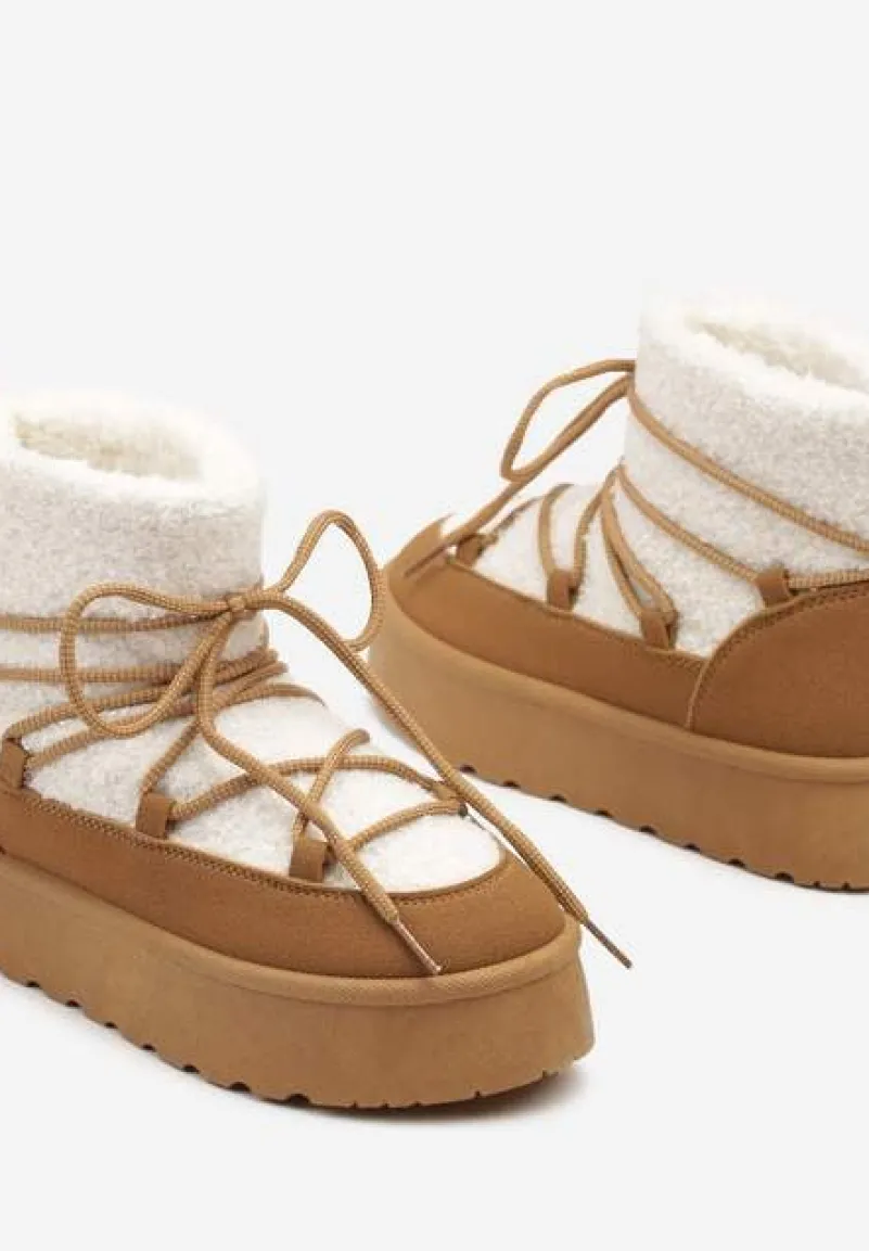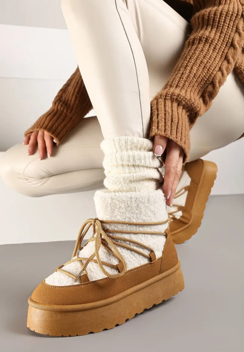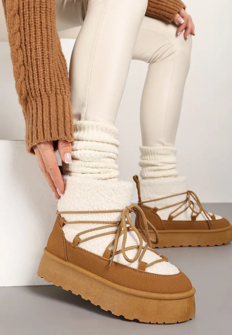 Sznurowane śniegowce na platformie Miathalie to must-have dla każdej fashionistki, ceniącej sobie ciepło i trendy wygląd. Platforma dodaje im lekkości, a okrągły nosek buta gwarantuje przestrzeń dla Twoich palców. Zapięcie na sznurowadła pozwala dopasować je do nogi, a obuwie jest wyborem idealnym na sezon jesienno-zimowy. Ozdobione futerkiem w stylu baranka, stanowią świetne uzupełnienie casualowych stylizacji z oversize’owym swetrem lub elegancki akcent, gdy założysz je do obcisłej sukienki i płaszcza w pudrowym kolorze.