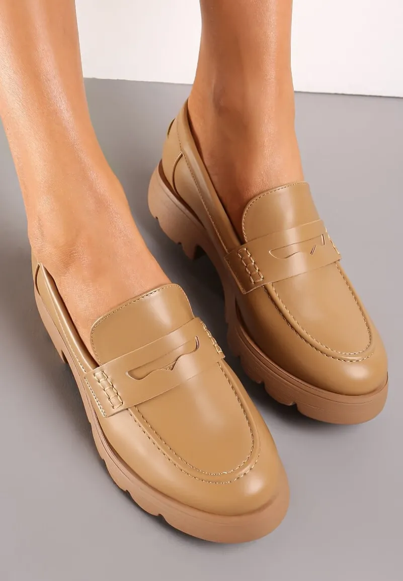 Płaskie, wsuwane mokasyny Abellia na grubszej podeszwie. Okrągły nosek, wykonane z ekoskóry.