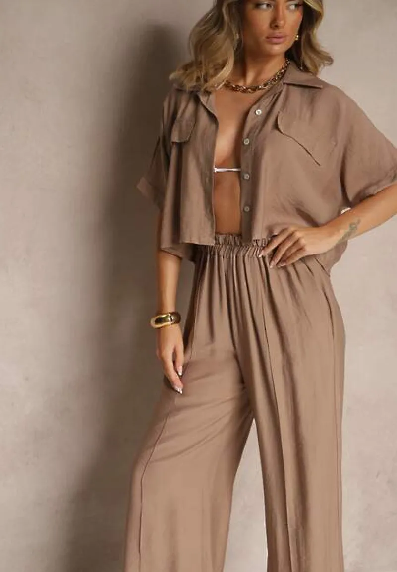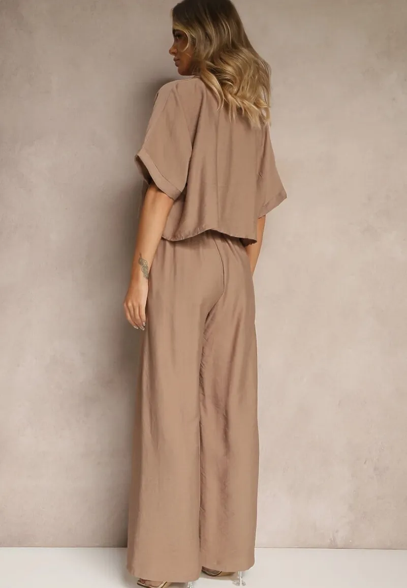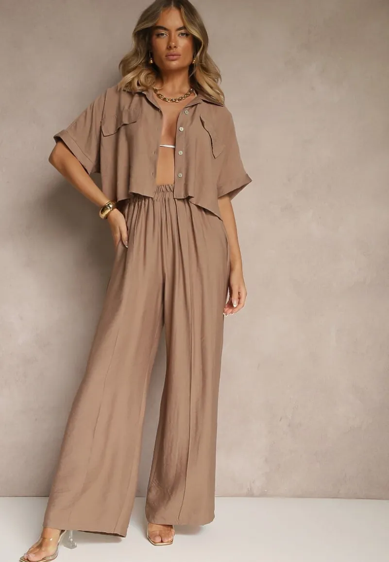 Komplet Velvitela to połączenie wygody i stylu, idealny na każdą porę roku. Luźna koszula doskonale współgra z szerokimi spodniami, tworząc niezobowiązującą, lecz elegancką sylwetkę. Zastosowanie wiskozy zapewnia materiałowi rozciągliwość i przewiewność, idealną na ciepłe dni oraz komfort noszenia bez względu na okoliczność. Bez wzorów, w minimalistycznym stylu, zestaw daje szeroki wachlarz możliwości aranżacji – od codziennych aktywności po wieczorne wyjścia.