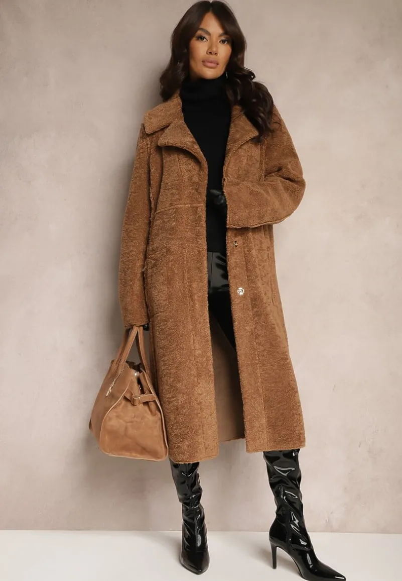 Płaszcz Ducta sięgający za kolano, o dwustronnym fasonie. Wykonany z futerka, z drugiej strony z ekoskóry. Wygodnie zapinany na napy. Posiada zasuwane kieszenie, z drugiej wsuwane.