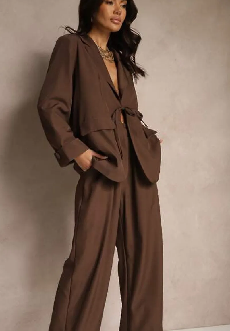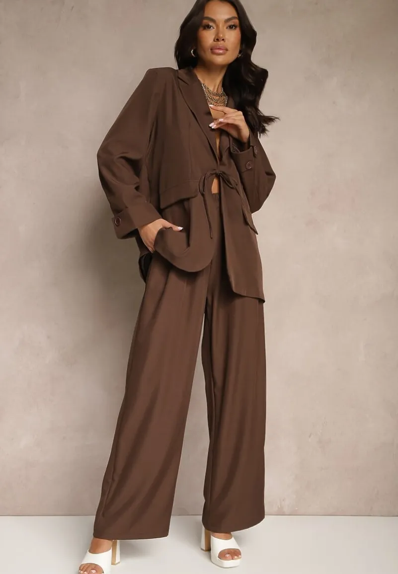 Komplet Tilinne zawiązywany w pasie to kwintesencja nowoczesnej elegancji, idealny na wiosenne i jesienne dni. Prosty krój spodni oraz uniwersalna długość marynarki pozwalają stworzyć zarówno casualowy, jak i formalny look. Marynarka podkreśla ramiona dzięki wszytym poduszeczkom, spodnie posiadają wsuwane kieszenie. Na co dzień zestaw go z minimalistycznymi trampkami i torebką na ramię, a na wieczorne wyjście z eleganckimi szpilkami i kobiecą biżuterią.