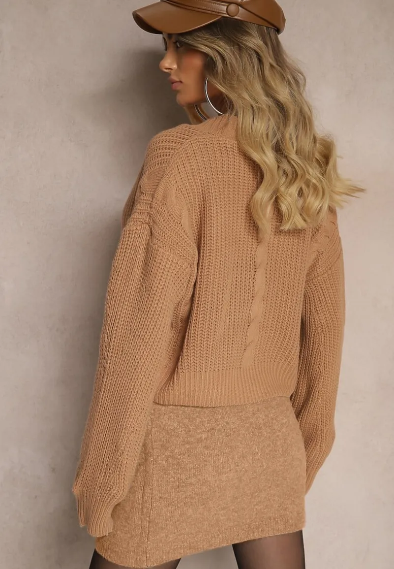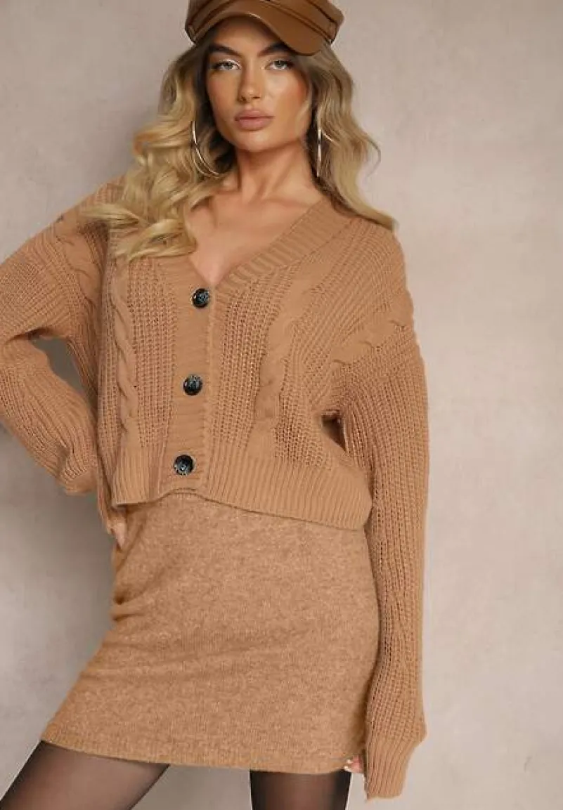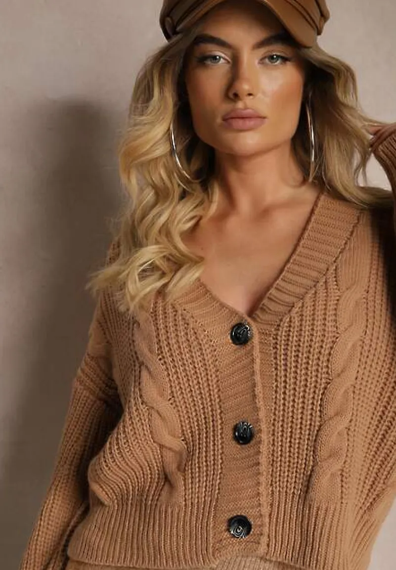 Kardigan Heluzze wygodnie zapinany z przodu na guziki. Wykonany z dzianinowej tkaniny w warkoczykowy splot.