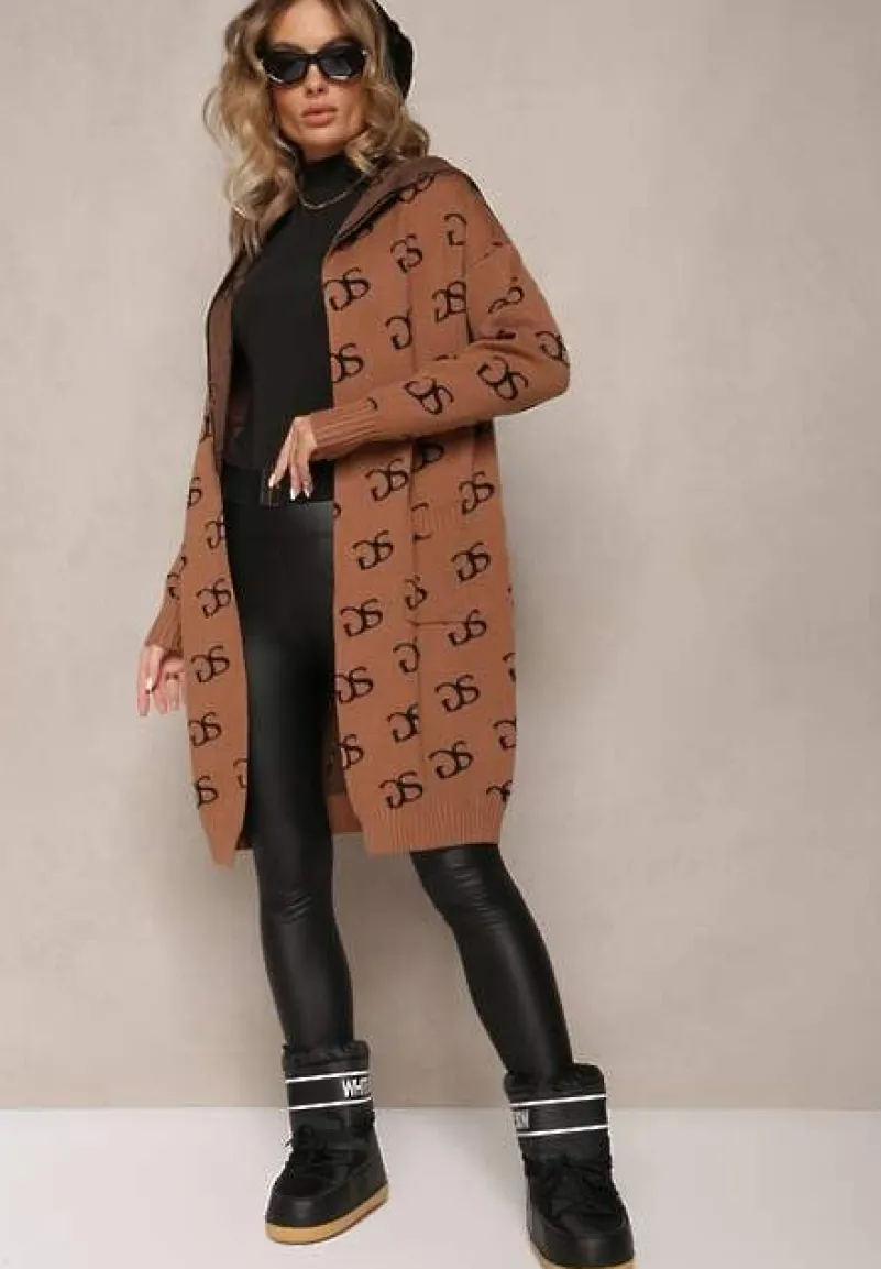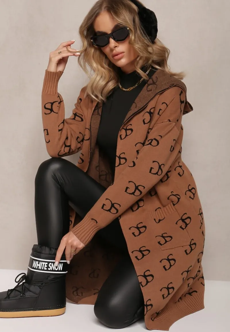 Elegancki kardigan Permila — w składzie rayon, idealny na jesień/zimę. Naszyte kieszenie, modny nadruk oraz kaptur.