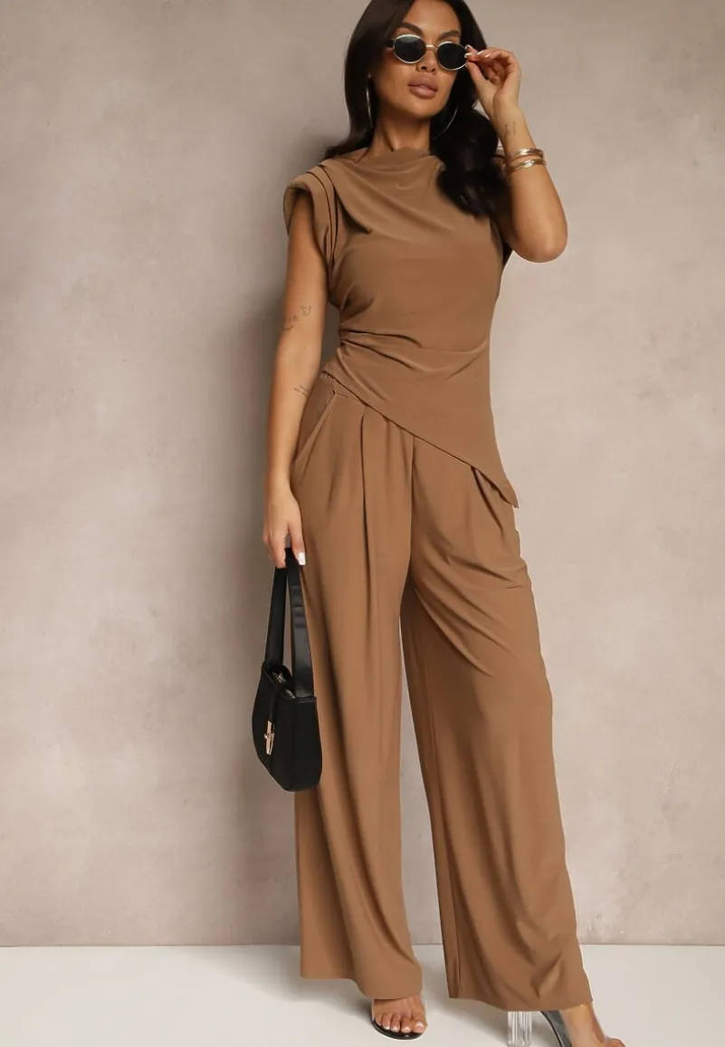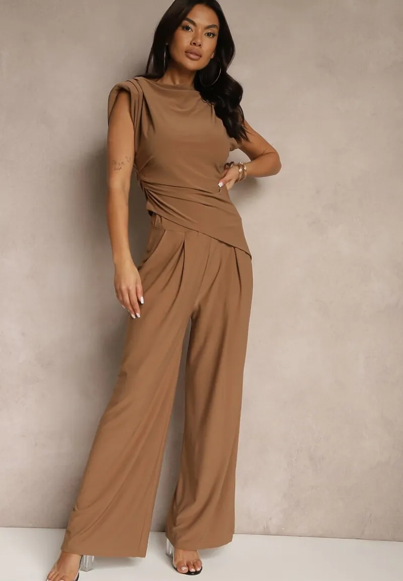 Oto idealny zestaw dla nowoczesnych kobiet, które pragną łączyć wygodę z elegancją! Nasz komplet Divanes Bluzka z Poduszkami w Ramionach i Proste Spodnie z gumką w pasie po rozciągnięciu w rozmiarze: S/M – 42 cm, M/L – 44 cm wyróżnia się luźnym krojem. Stylizuj go z klasycznymi balerinkami i elegancką torbą na ramię, aby stworzyć efektowny look na lunch z przyjaciółkami, lub przekształć go w wyjściową stylizację, dodając szpilki i wyrazistą biżuterię. Bluzka ma wszyte poduszki w ramionach.