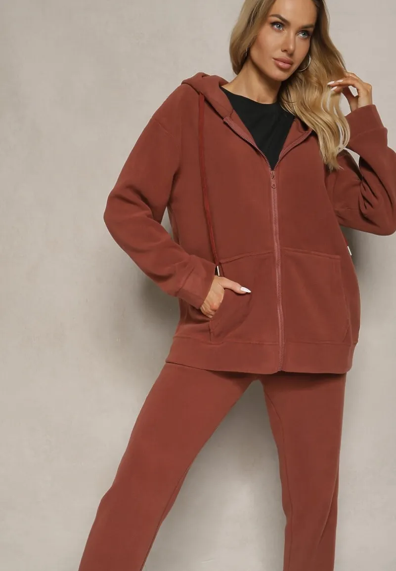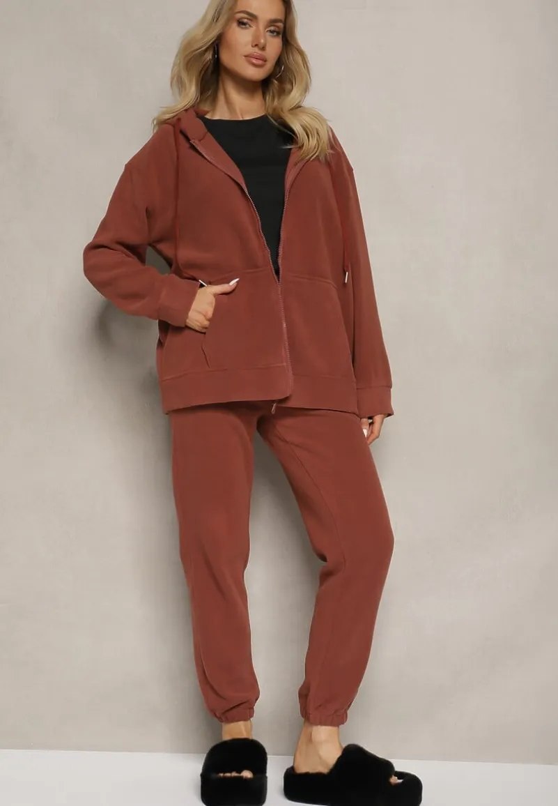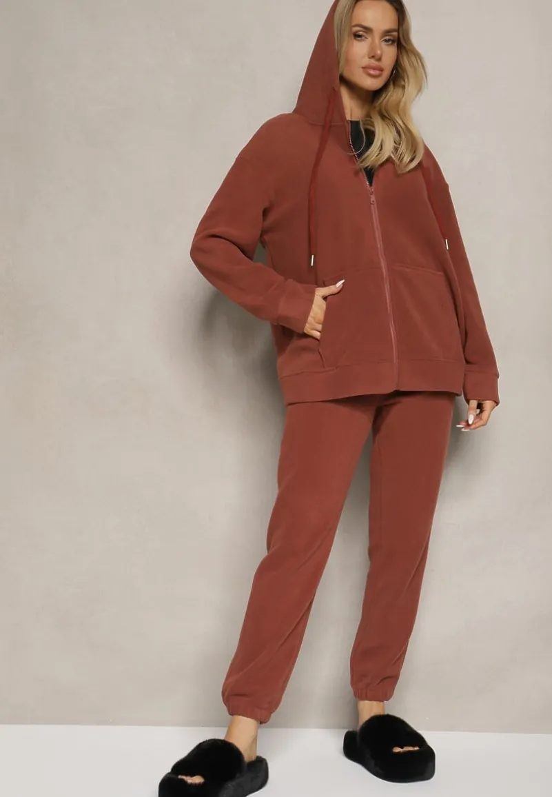 Komplet Dresowy Bennila z bluzą i kapturem. Całość wykonana z dzianinowej tkaniny. Zasuwana bluza na zamek błyskawiczny. Posiada wsuwane kieszenie. Spodnie dresowe z gumką w pasie i na dole nogawek. Na wysokości bioder wsuwane kieszenie.