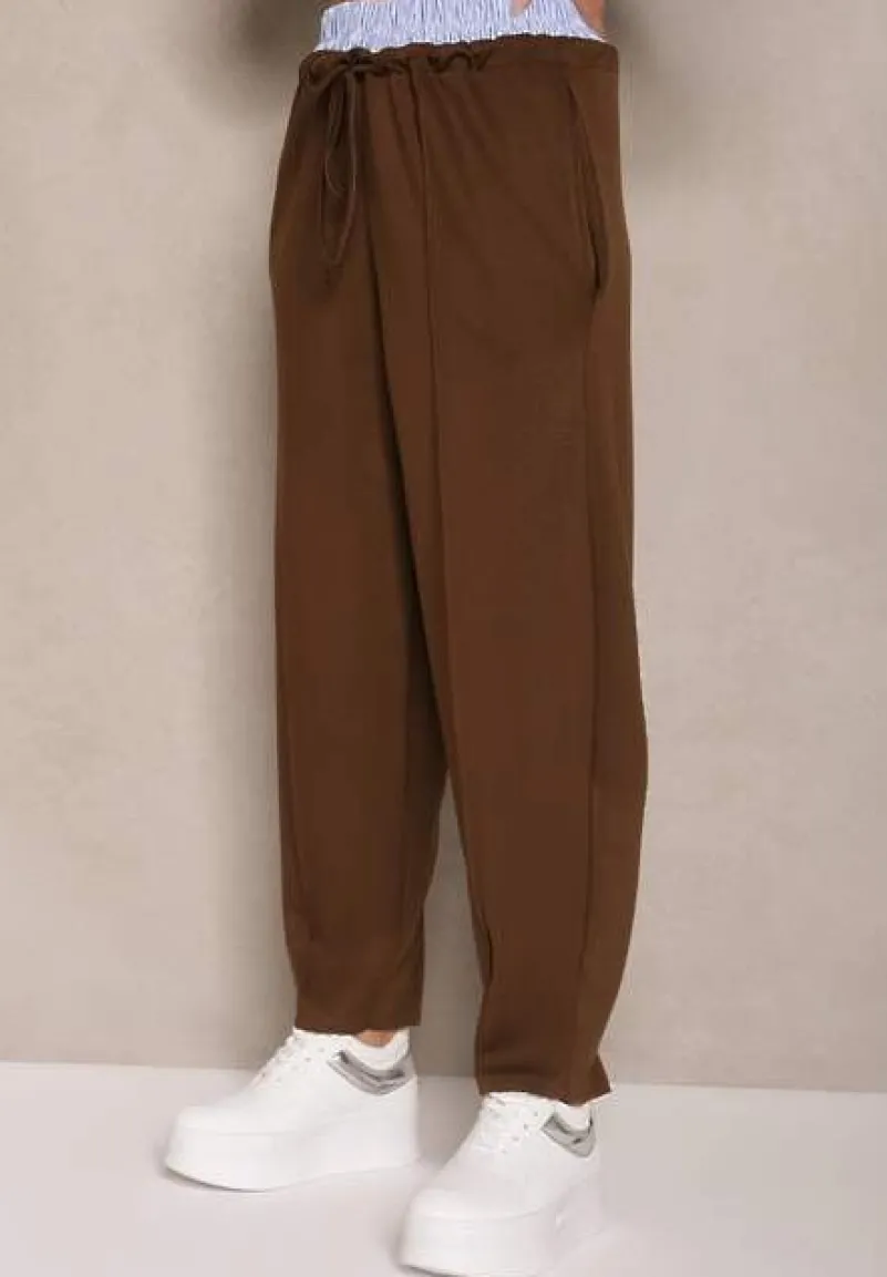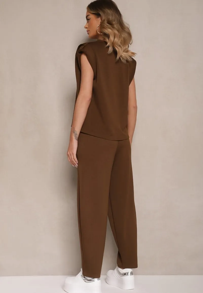 Odkryj wyjątkowy Komplet Dresowy z Wiskozą Nitunela – idealne połączenie wygody i stylu, które sprawi, że będziesz wyglądać modnie i czuć się komfortowo w każdej sytuacji! Bluzka bez rękawów z gąbeczkami w ramionach doskonale komponuje się ze spodniami z ozdobnym ściągaczem i wsuwanymi kieszeniami. Zestaw ten nie tylko podkreśli sylwetkę, ale również zapewni swobodę ruchów, co czyni go perfekcyjnym wyborem zarówno na codzienny spacer, jak i na spotkanie z przyjaciółmi. Na co dzień połącz go ze sneakersami i torbą na ramię, a na formalne okazje postaw na mokasyny z łańcuszkiem i biżuterię.