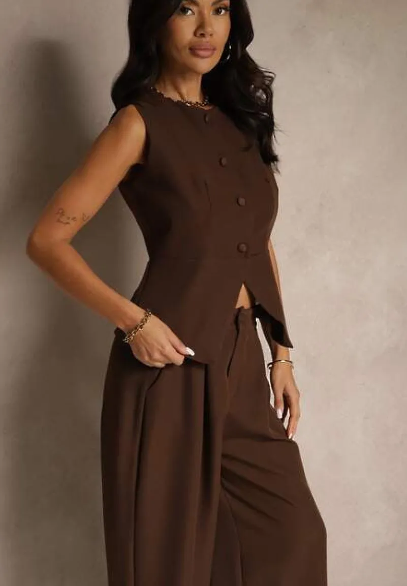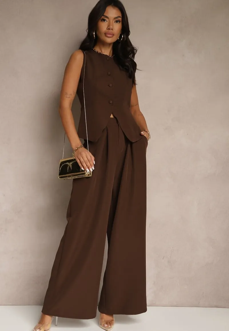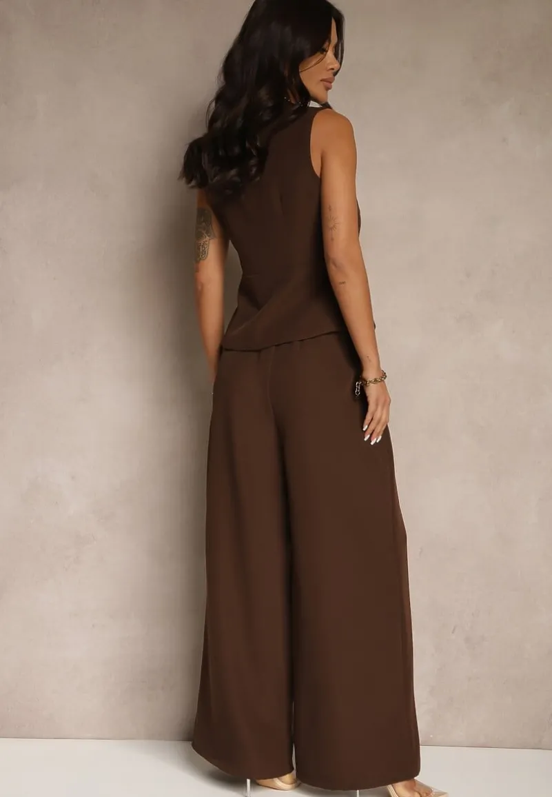 Zabłyśnij w każdej sytuacji dzięki wyjątkowemu kompletowi garniturowemu Ziorene, który łączy nowoczesny design z elegancją! Szerokie spodnie z elastyczną gumką z tyłu oraz wsuwanymi kieszeniami i dopasowana kamizelka wyróżniają się krojem, który dopasowuje się do sylwetki, podkreślając kobiece kształty. Idealnie sprawdzi się zarówno w biurze, jak i na wieczornym wydarzeniu; wystarczy dodać szpilki i minimalistyczną biżuterię, aby stworzyć zachwycający look.