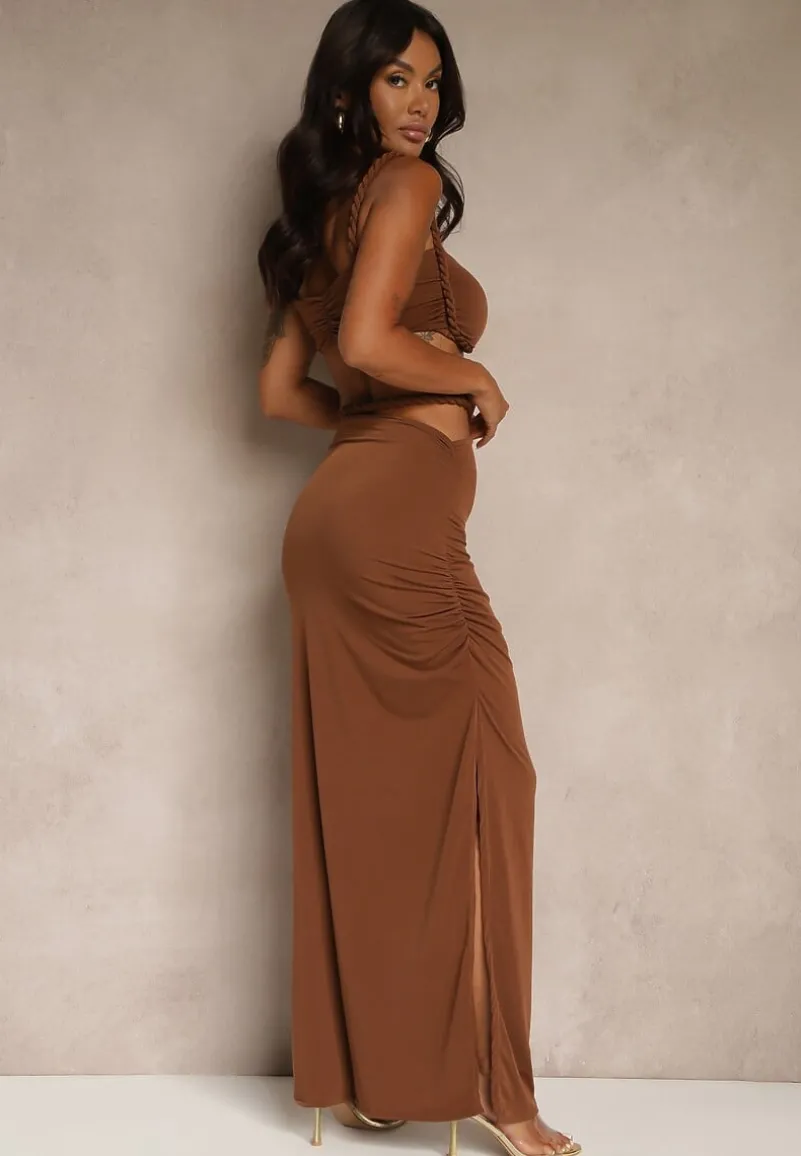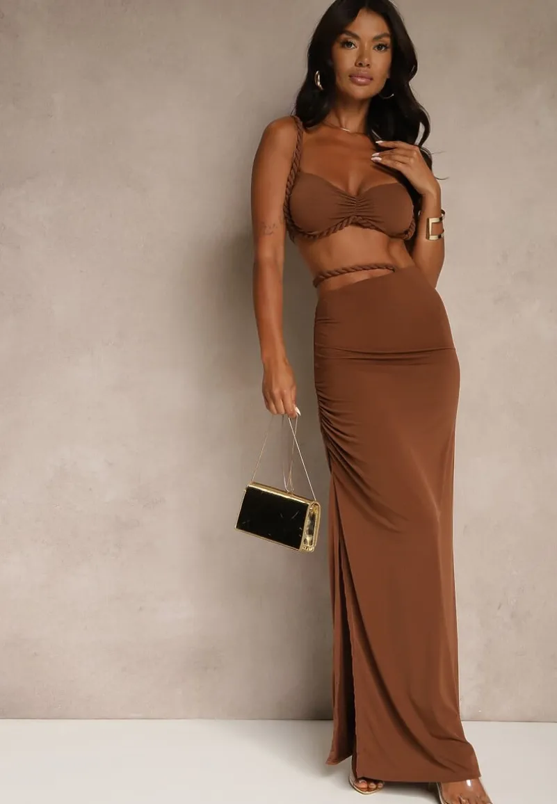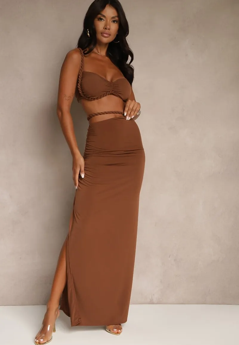Odkryj wyjątkowy komplet Saviavelle, który łączy w sobie elegancję i nowoczesny twist! Fason podkreślający sylwetkę gwarantuje, że będziesz czuć się pewnie i stylowo na każdej imprezie. Rozciągliwy materiał idealnie dopasowuje się do ciała, a marszczenia dodają szyku, idealnie wpisując się w aktualne trendy. Do stylizacji na co dzień wystarczy połączyć go z jeansową kurtką i sneakersami, a na wieczorne wyjście postaw na szpilki oraz delikatną biżuterię — efekt wow gwarantowany! Top posiada wszyte miseczki, a spódnica — krótką, elastyczną podszewkę.