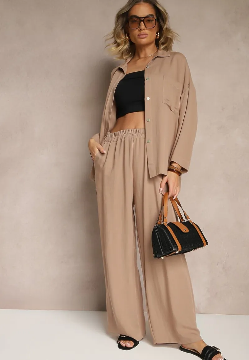 Odkryj niepowtarzalny styl z kompletem Novesca z wiskozy, który zachwyca modnym fasonem. Spodnie o szerokim kroju z gumką w pasie ze wsuwanymi kieszeniami w połączeniu z luźną koszulą na guziki będą idealnym wyborem na każdą okazję — od leniwych weekendowych spacerów po eleganckie brunch’e z przyjaciółkami. Uzupełnij swoją stylizację o wygodne sneakersy na co dzień.