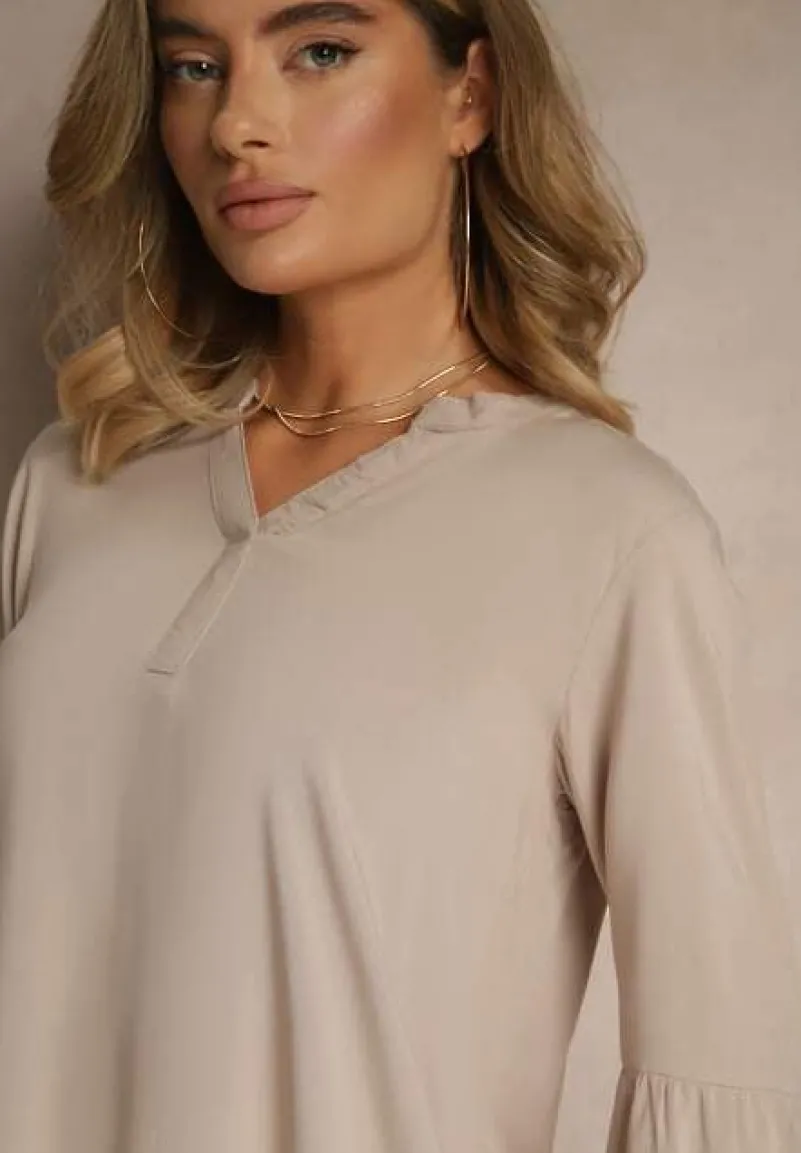 Bluzka Ralivia z Wiskozy to must-have w szafie każdej modnej kobiety! Z pięknymi falbankami na rękawach oraz subtelnym dekoltem, dodaje lekkości i elegancji, idealnie wpisując się w aktualne trendy. Świetnie sprawdzi się zarówno na codzienne wyjścia — zestaw ją z jeansami i sneakersami — jak i na bardziej formalne okazje, wystylizowana z ołówkową spódnicą i szpilkami. Wykonana z wiskozy.