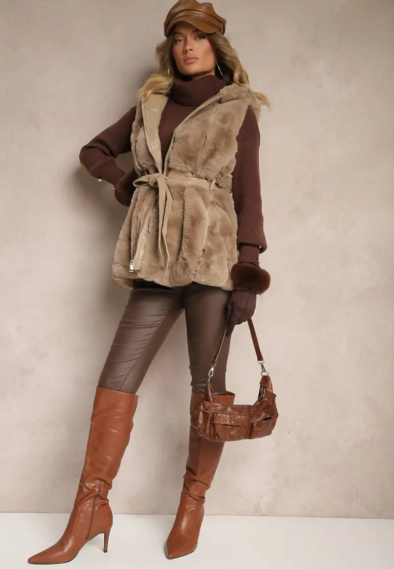 Kamizelka Jackiena to kwintesencja stylu, który łączy elegancję z nutą swobody. Jej uniwersalny fason z kapturem i wsuwanymi kieszonkami świetnie sprawdzi się na codzienne wyjścia, jak i podczas szczególnych okazji. Wiązanie w talii pięknie podkreśli sylwetkę, a futrzany materiał zadba o komfort w chłodniejsze dni sezonu przejściowego. Stwórz oszałamiające połączenie z topem z długim rękawem i wąskimi spodniami lub z dopasowaną sukienką i kozakami – bądź gotowa na podziwiające spojrzenia!