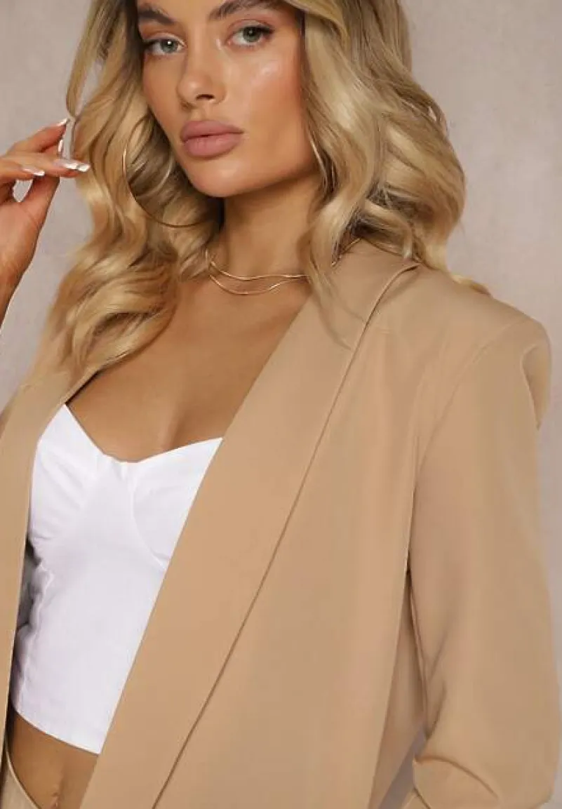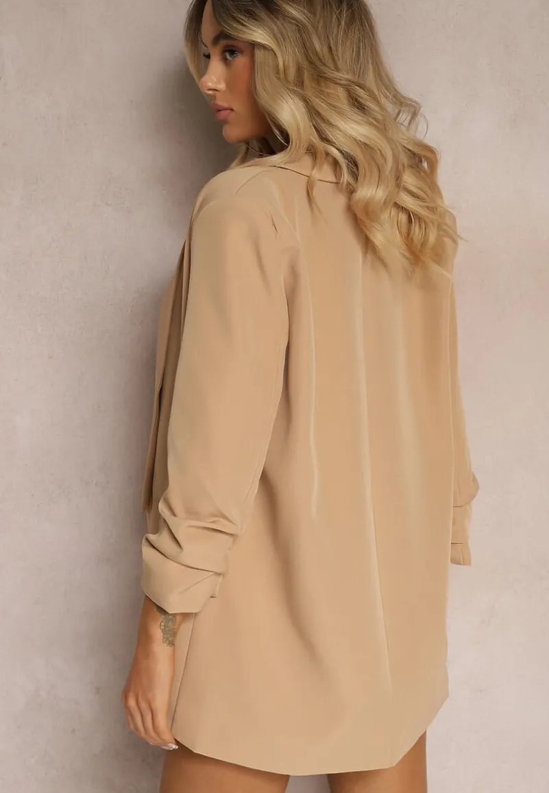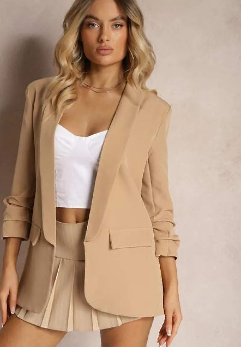 Marynarka Orolea wykonana z tkaniny o gładkiej i jednolitej strukturze. Elegancki i ponadczasowy design. Rękawy o długości 3/4, dekorowane subtelnym marszczeniem. Środek podszyty podszewką. Z głębokim, trójkątnym dekoltem oraz wykładanym kołnierzem. Po bokach ozdobne klapy. Marynarka Orolea wygląda zjawiskowo zestawiona zarówno z minimalistyczną, jak i wzorzystą stylizacją!