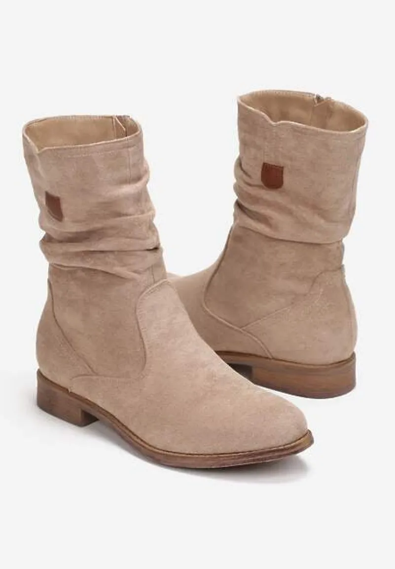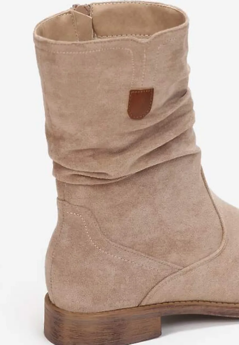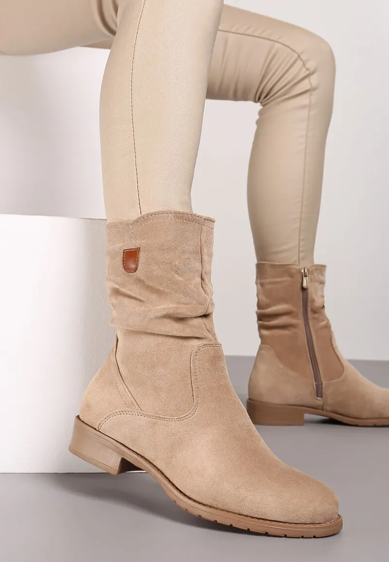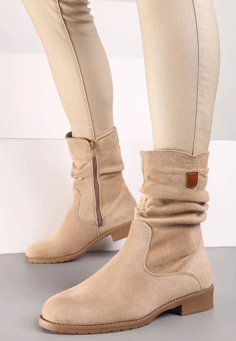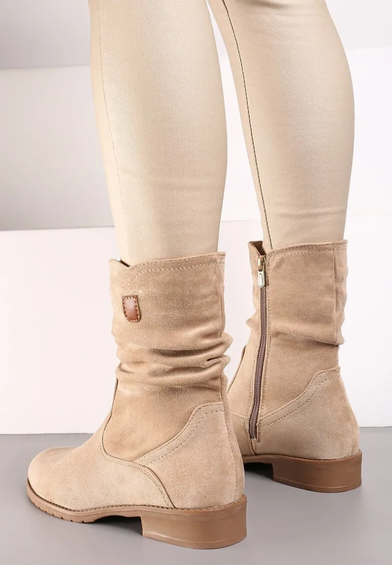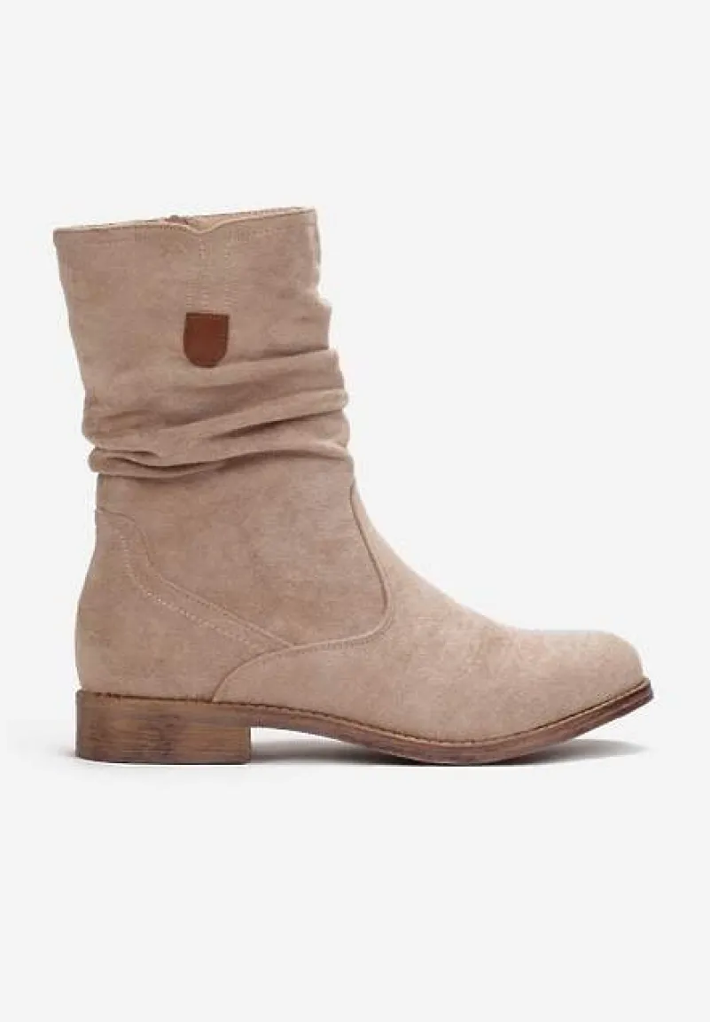 Botki Rosanes o klasycznym fasonie. Są lekko ocieplane, cholewka marszczona, wykonana z imitacji zamszu.