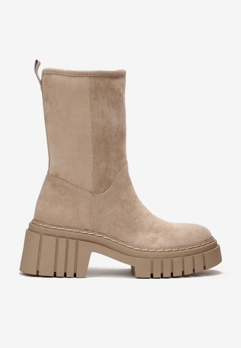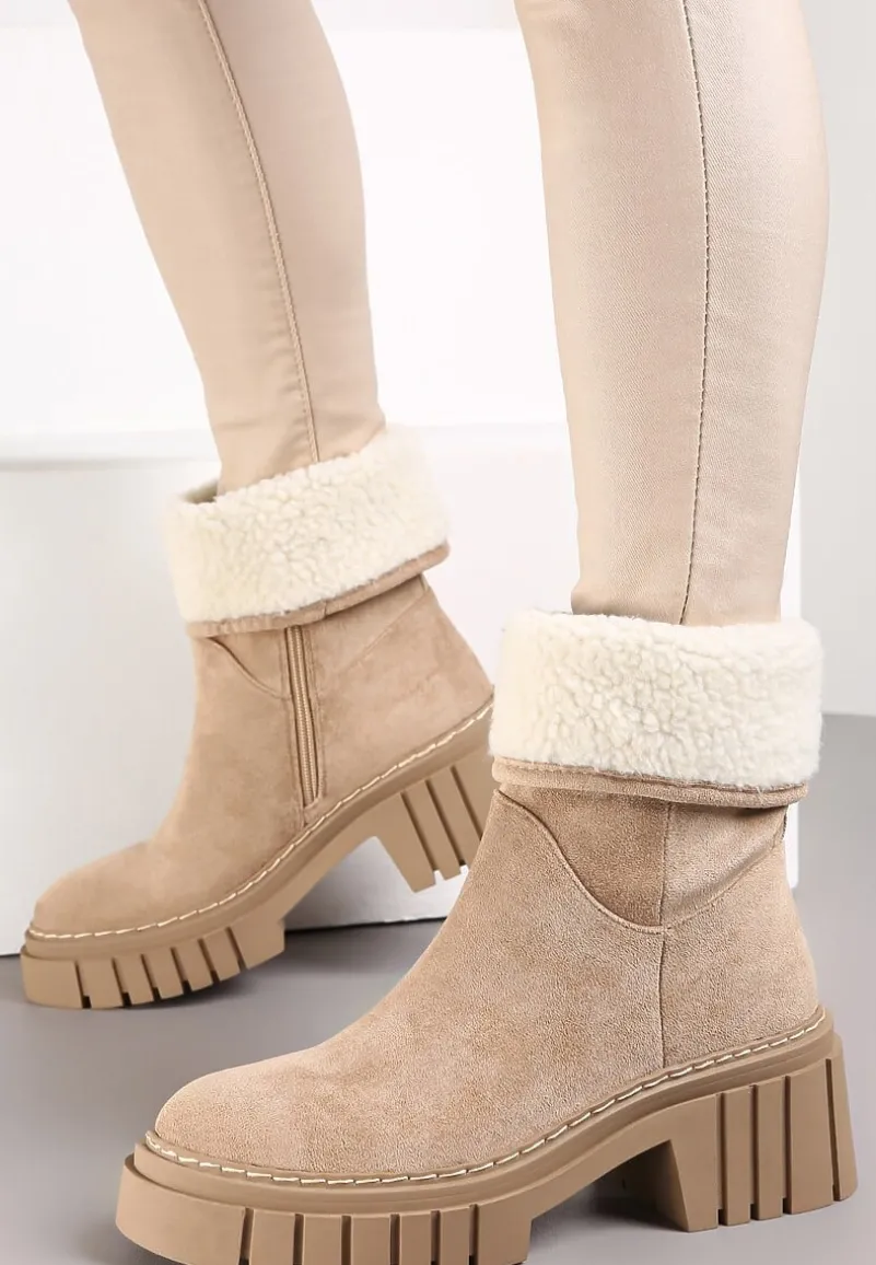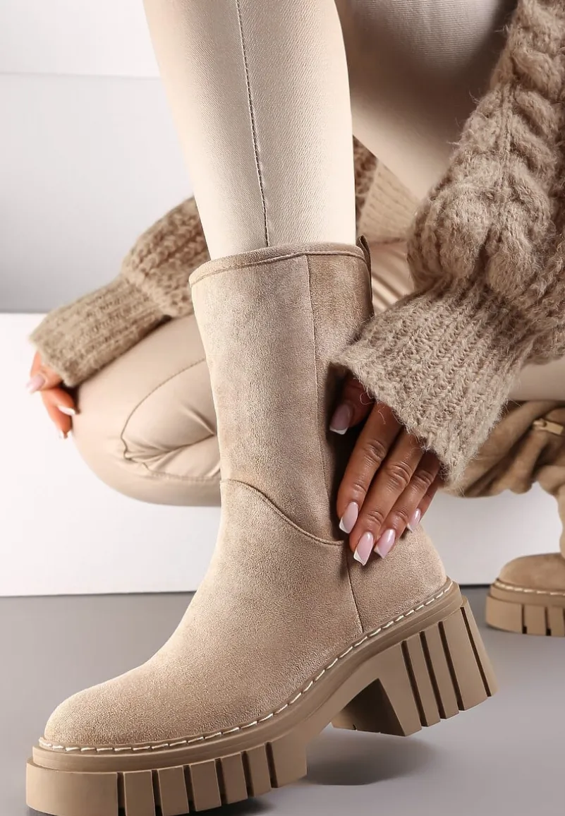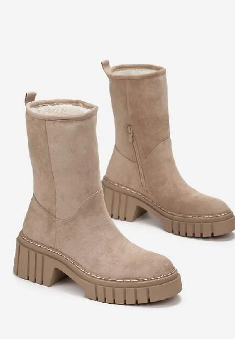 Botki Lymal wykonane z ekozamszu, z wysoką cholewką za kostkę. Zasuwane na zamek błyskawiczny od wewnętrznej strony. Osadzone na grubej podeszwie z wycięciami. Z tyłu tasiemka, która ułatwia zakładanie. Ocieplane od środka kocem obuwniczym.
