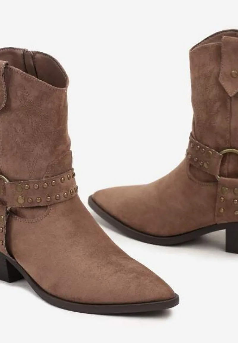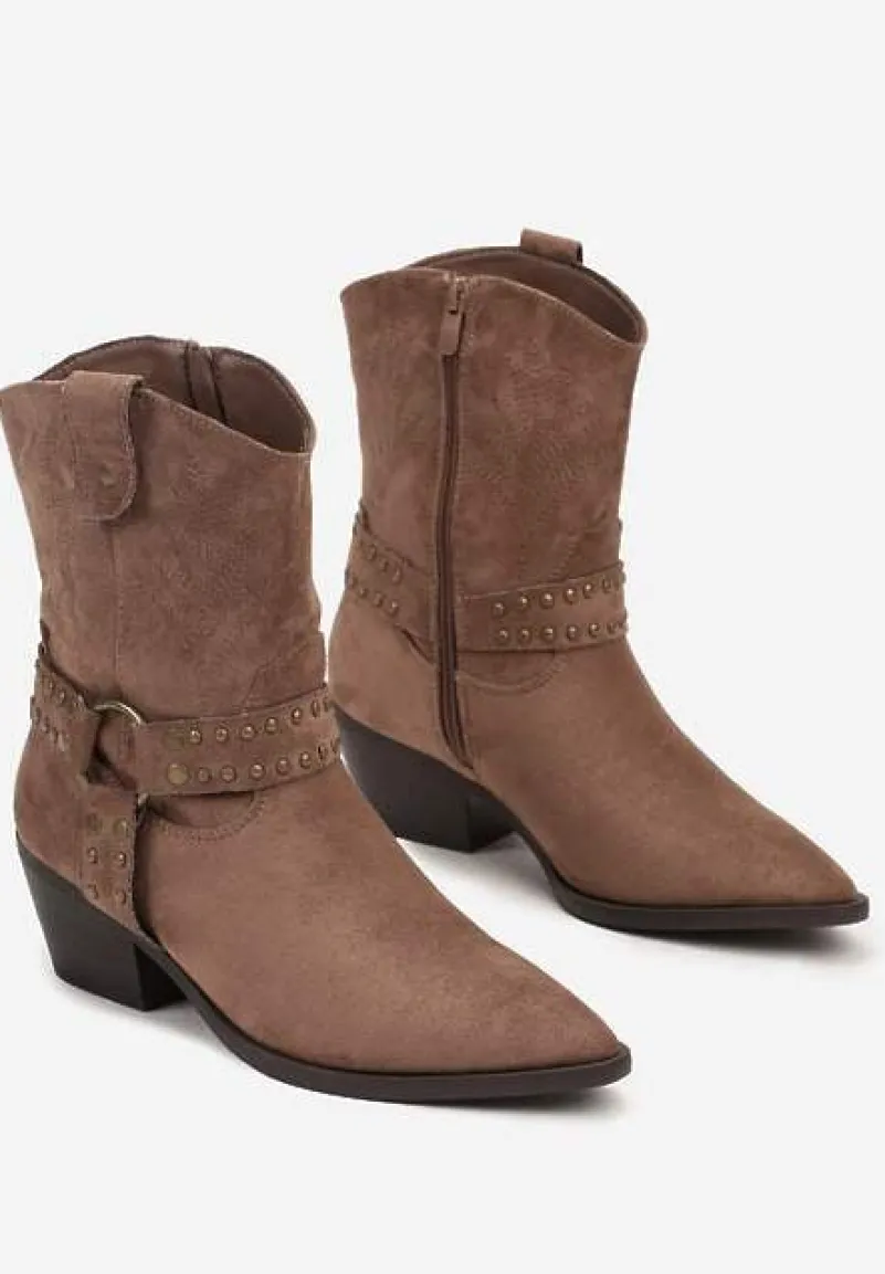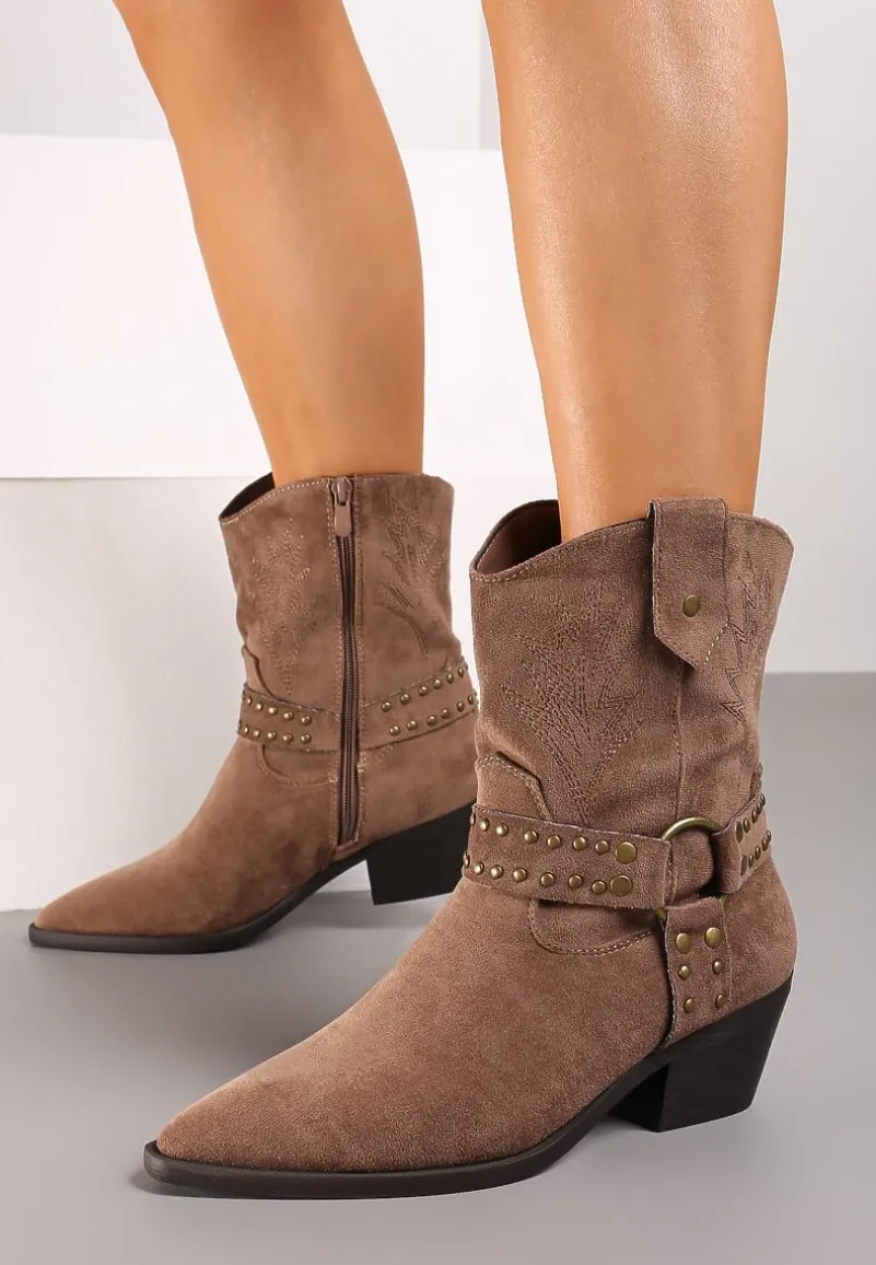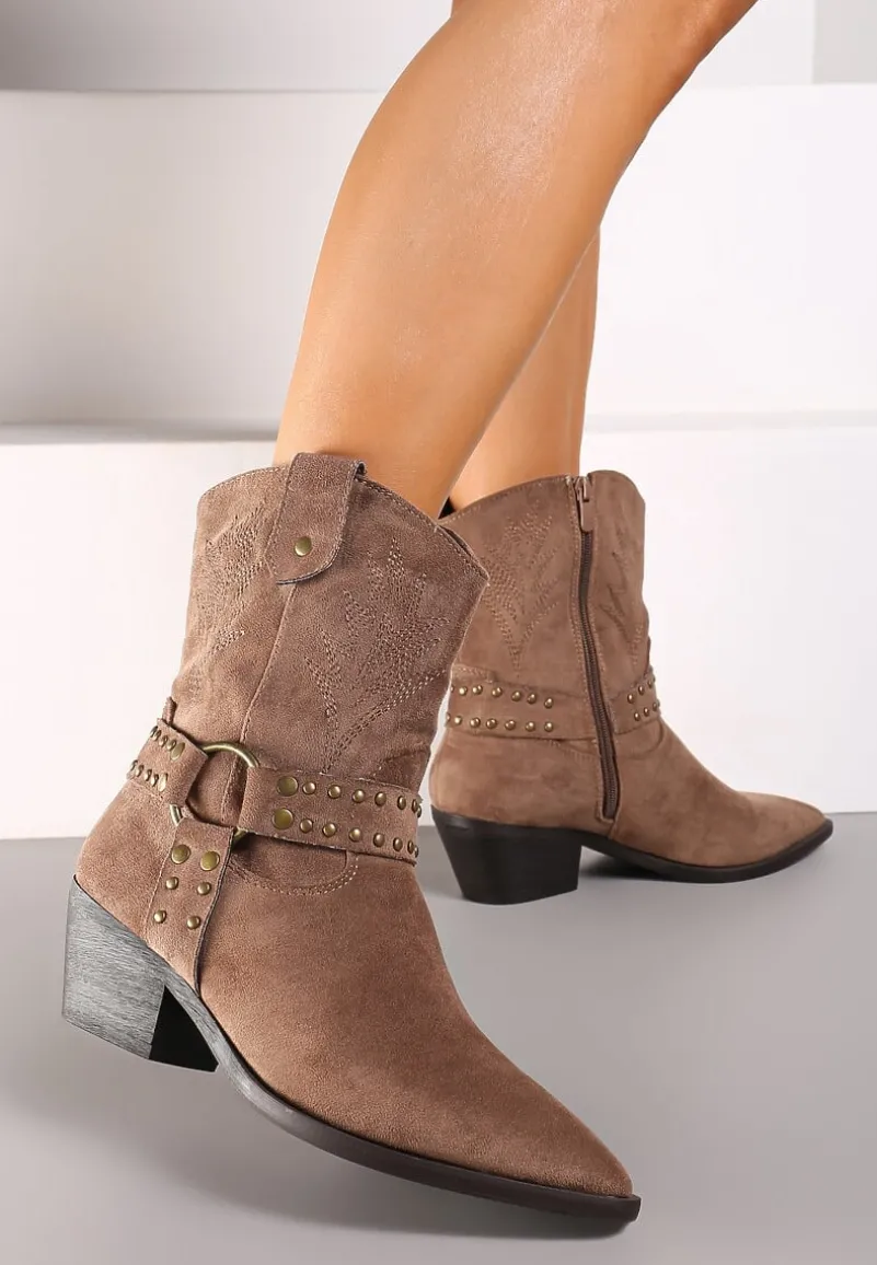Botki Merindale na suwak to kwintesencja stylu, który śmiało możesz włączyć do swojej garderoby niezależnie od sezonu. Stożkowy obcas zapewni stabilność podczas całodziennej aktywności Ostro zakończony nosek i błyskotliwa klamra z ćwiekami nadają im charakteru bikerskich kowbojek i doskonale komponują się z rockowym duchem miejskich trendów. Połącz je z dopasowanymi jeansami i przewiewną koszulą w delikatnym kolorze dla casualowego looku, albo z aksamitną sukienką i skórzaną ramoneską, tworząc outfit idealny na wieczorne wyjście.