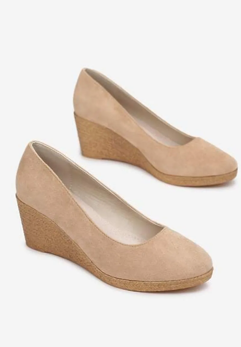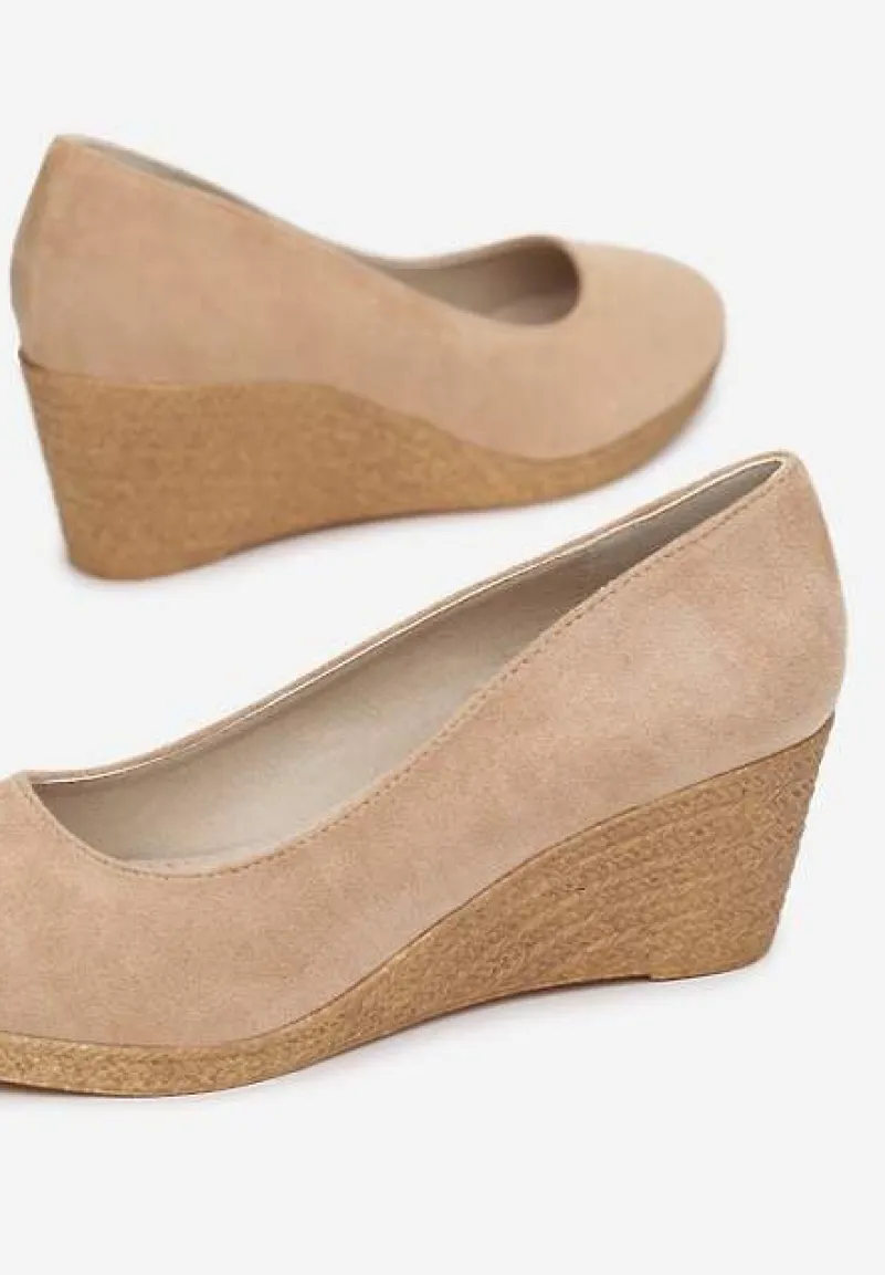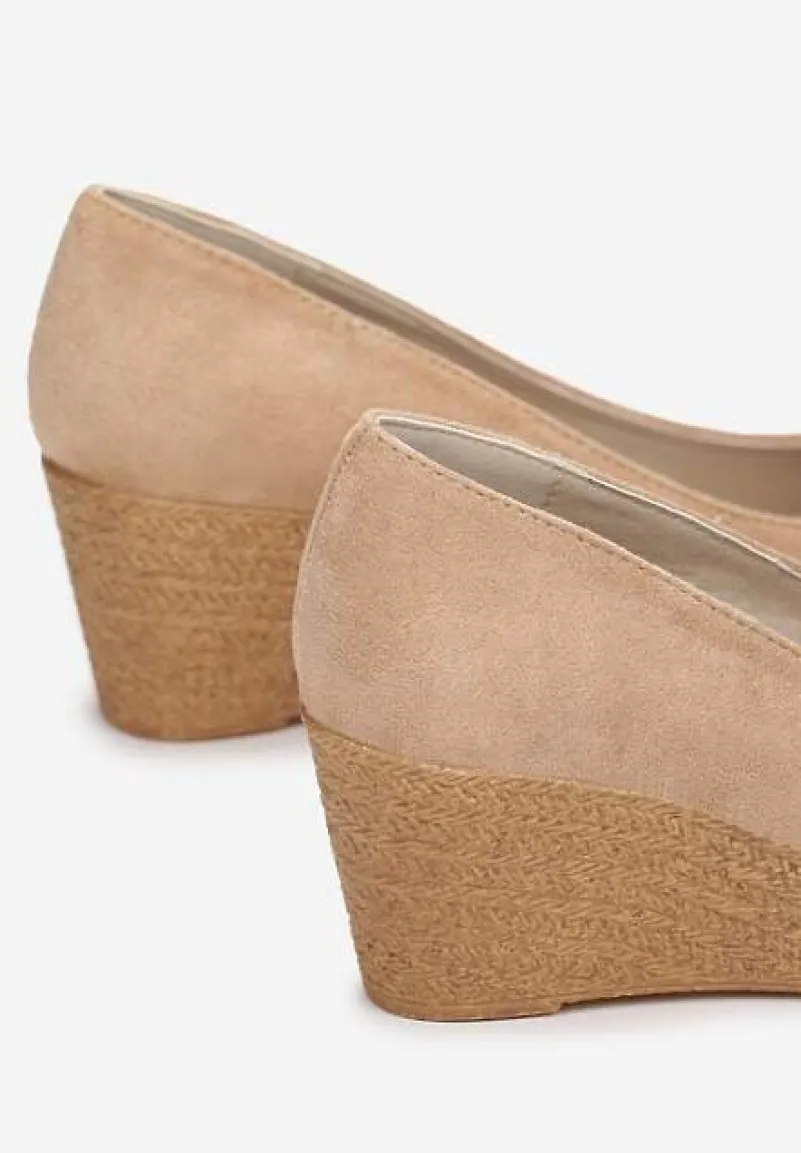 Czółenka Ebersa na koturnie, z tworzywa imitującym plecionkę. Nosek okrągły. Cholewka wykonana z ekozamszu. Wkładka ze skóry naturalnej.