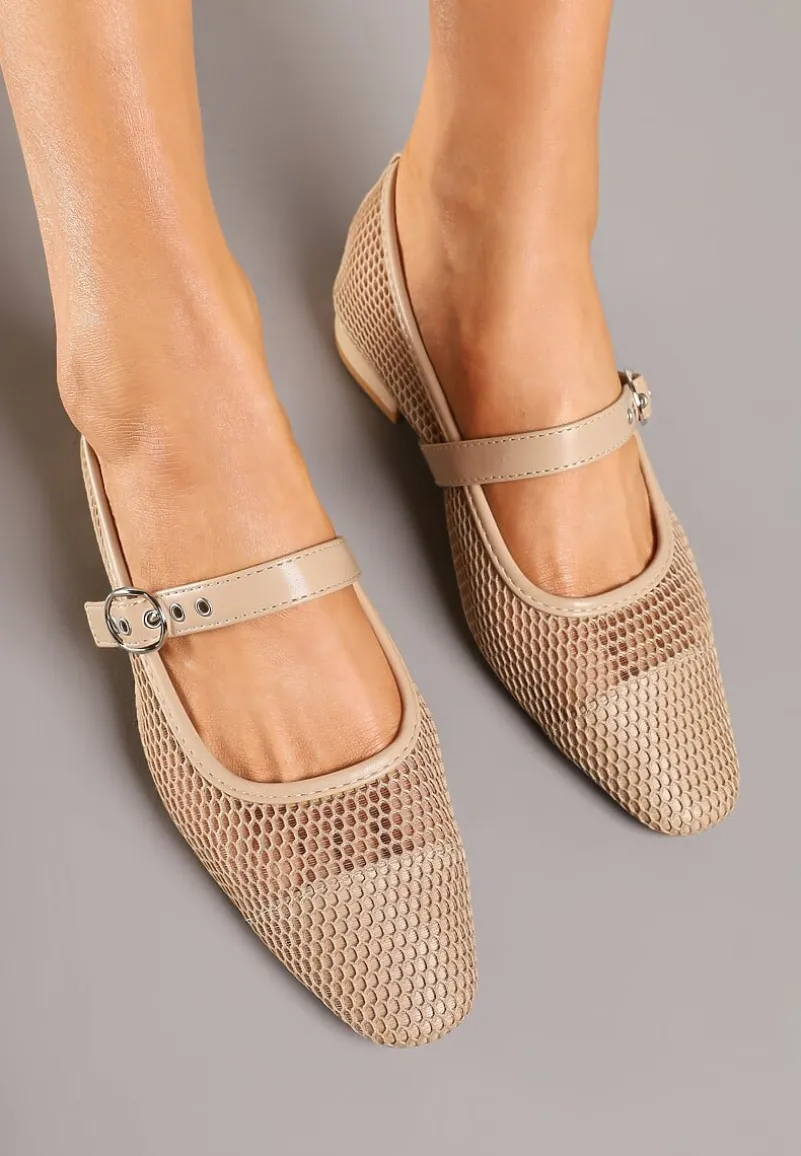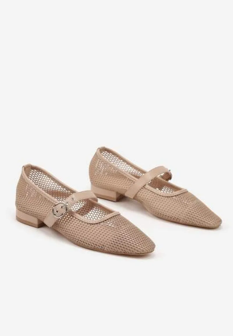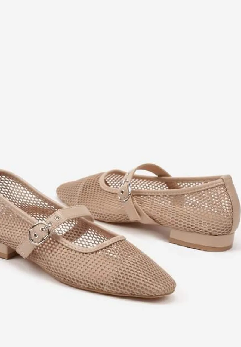 Czółenka na Niskim Słupku z Siateczki Zapinane na Pasek ze Sprzączką Elasiela – sprzączka dodaje uroku i zapewnia idealne dopasowanie do stopy.
