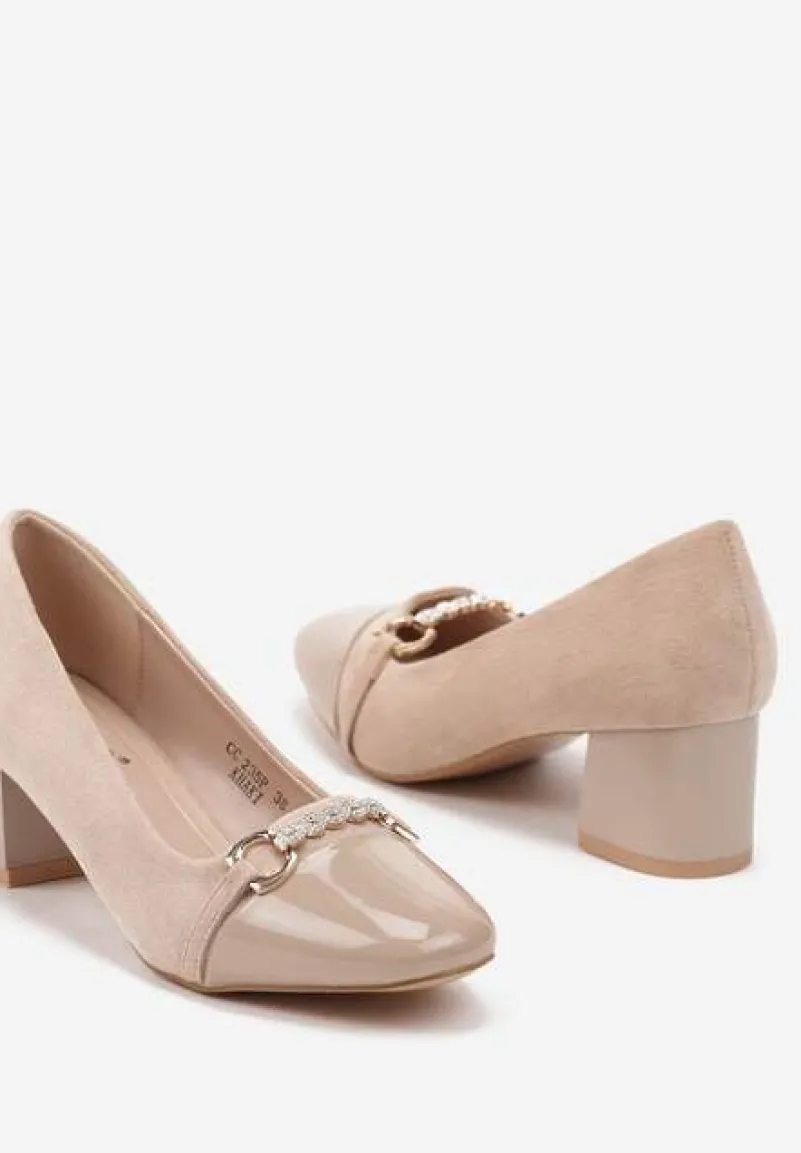 Czółenka Ivaria na niskim obcasie typu słupek to kwintesencja elegancji. Buty zdobione są subtelnym łańcuszkiem, który dodaje im sznytu. Zaokrąglone noski zapewniają wygodę, a brak zapięcia ułatwia zakładanie. Bez względu na okazję, te buty będą zawsze idealnym wyborem – doskonale sprawdzą się zarówno do biurowych stylizacji z klasycznymi cygaretkami i marynarką, jak i do lekkiej sukienki na casualowe spotkania. Wyraź swoją modową indywidualność dzięki tym ponadczasowym uniwersalnym czółenkom!