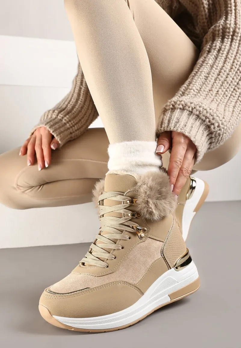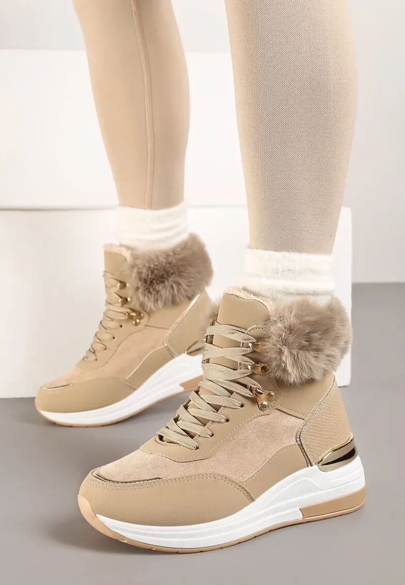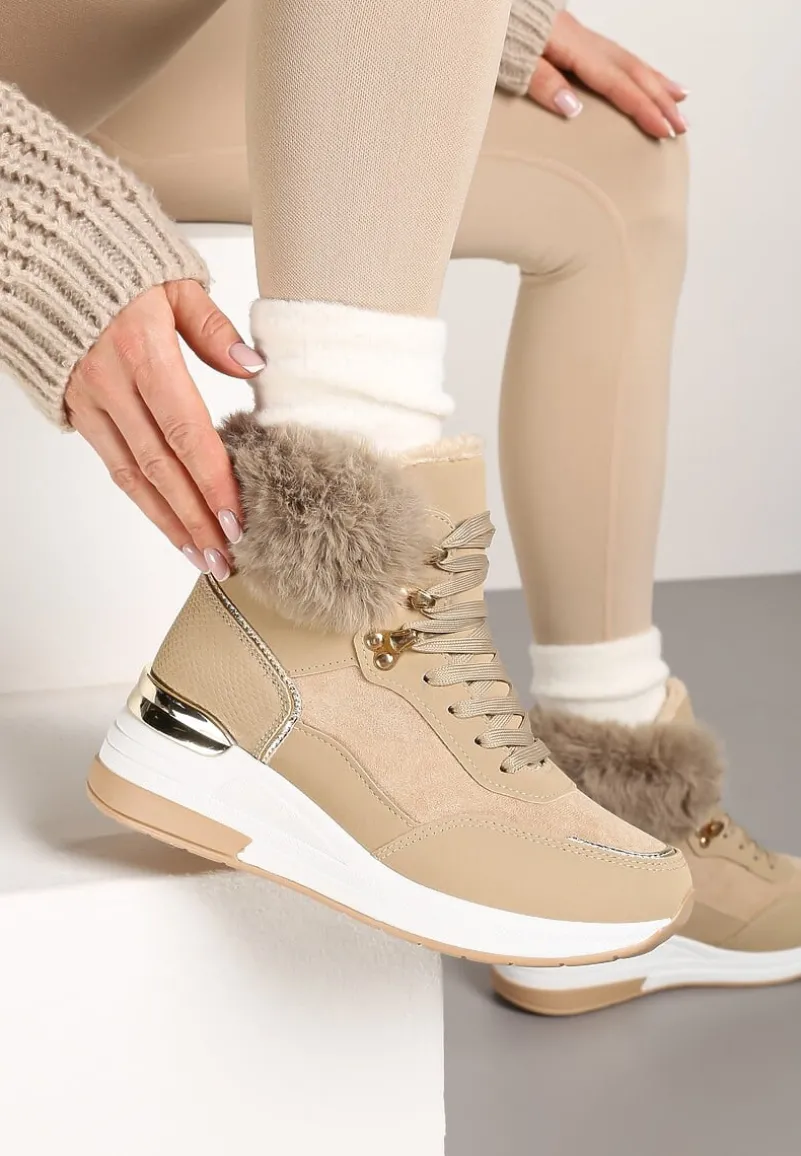 Odkryj niebanalny szyk i miejski styl ze sneakersami na koturnie Kaithrin, które łączą wygodę z oryginalnym designem! Ukryty wewnątrz buta obcas zapewnia stabilność, a futerkowa wkładka otula Twoją stopę i gwarantuje ciepło w chłodniejsze dni. Zaokrąglone noski oferują przestrzeń dla Twoich palców, a solidne zapięcie na sznurowadła gwarantuje łatwe dopasowanie. Wystylizuj te modne buty z grubymi rajstopami i długą koszulową sukienką, tworząc nieformalny look, lub skompletuj z plisowaną spódnicą i dzianinowym swetrem, aby zyskać szykowną stylizację na chłodne dni.