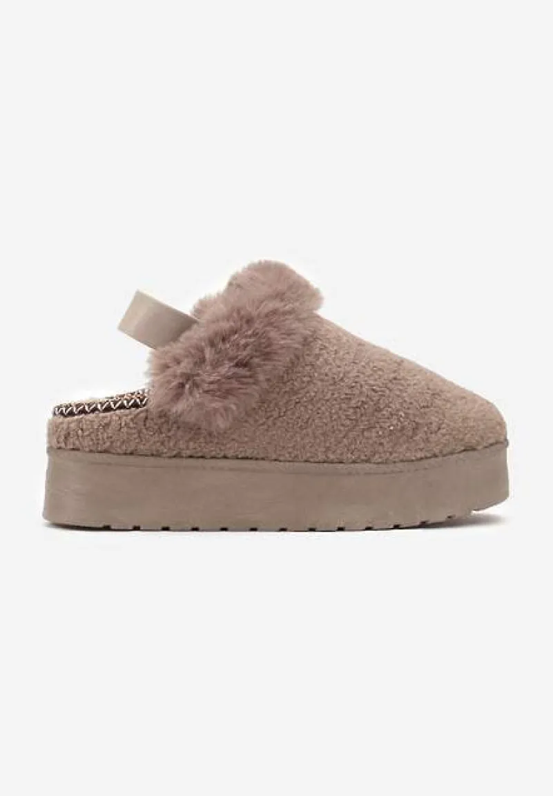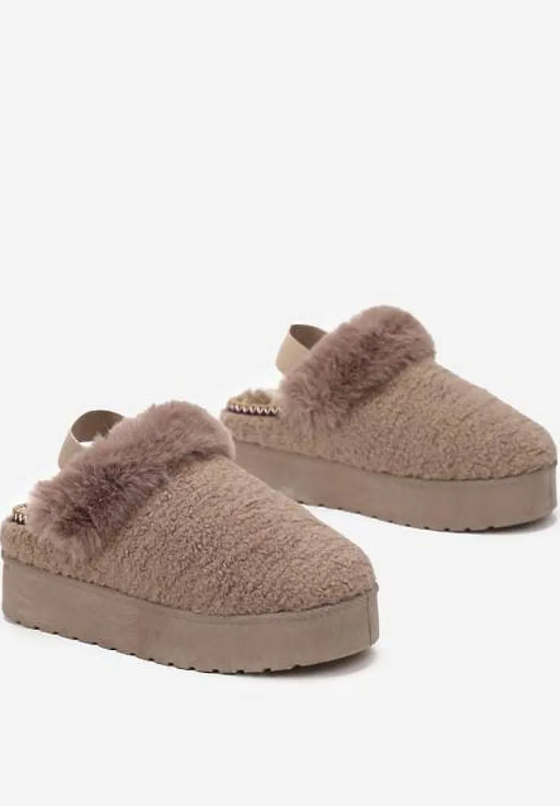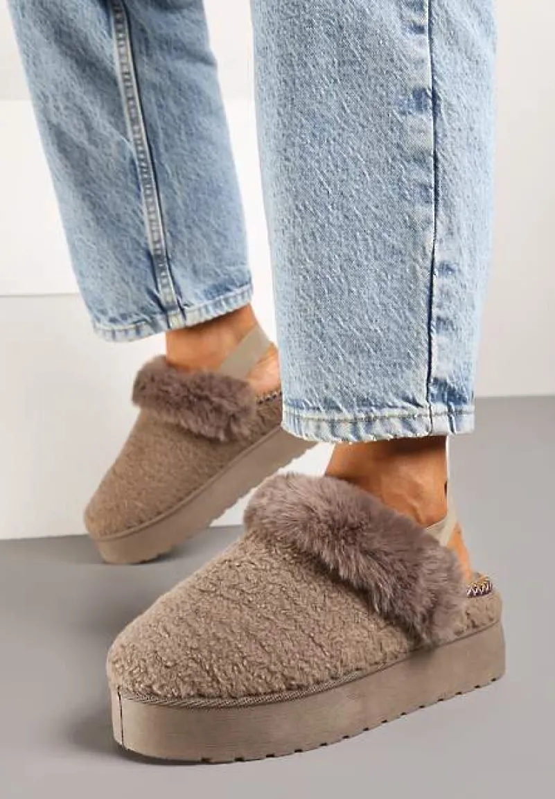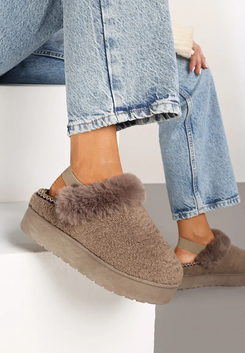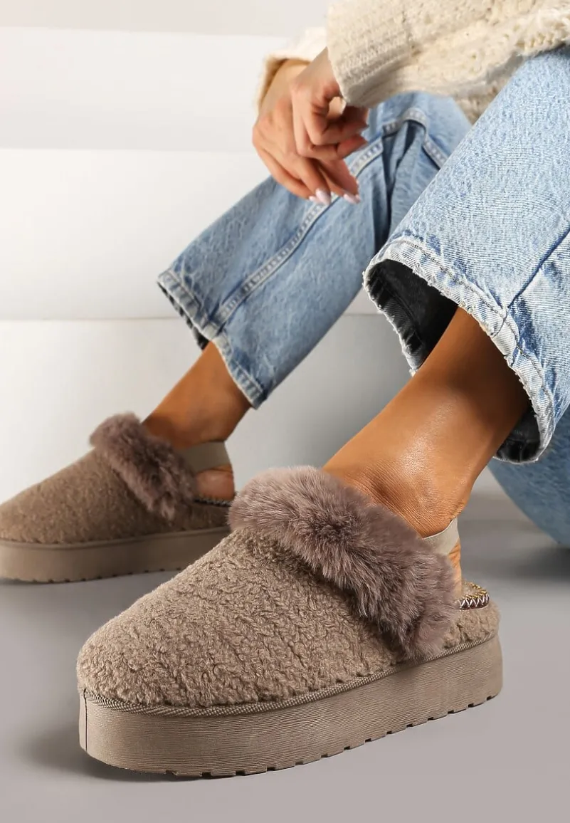 Kapcie Sosena wykonane z miękkiego futerka. Osadzone na grubej podeszwie. Z tyłu posiadają elastyczną gumkę zakładaną na piętę. Idealne na zimowe wieczory!