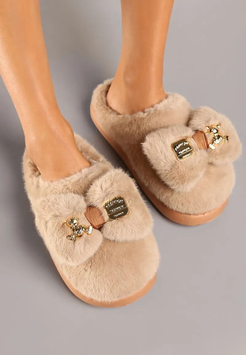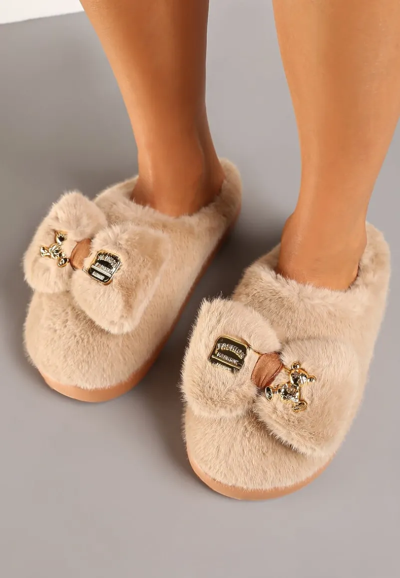 Poznaj urocze kapcie Vamisha z płaską podeszwą, które są prawdziwym synonimem szyku. Te futrzane kapcie z ozdobnymi aplikacjami i kokardą to must-have dla każdej miłośniczki mody, która ceni sobie wyjątkowe dodatki. Ich zamknięty krój i brak zapięcia sprawiają, że są idealne na szybkie codzienne wyjścia lub relaks w domowym zaciszu. Zestaw je z ulubionym dresowym kompletem na leniwe popołudnie.
