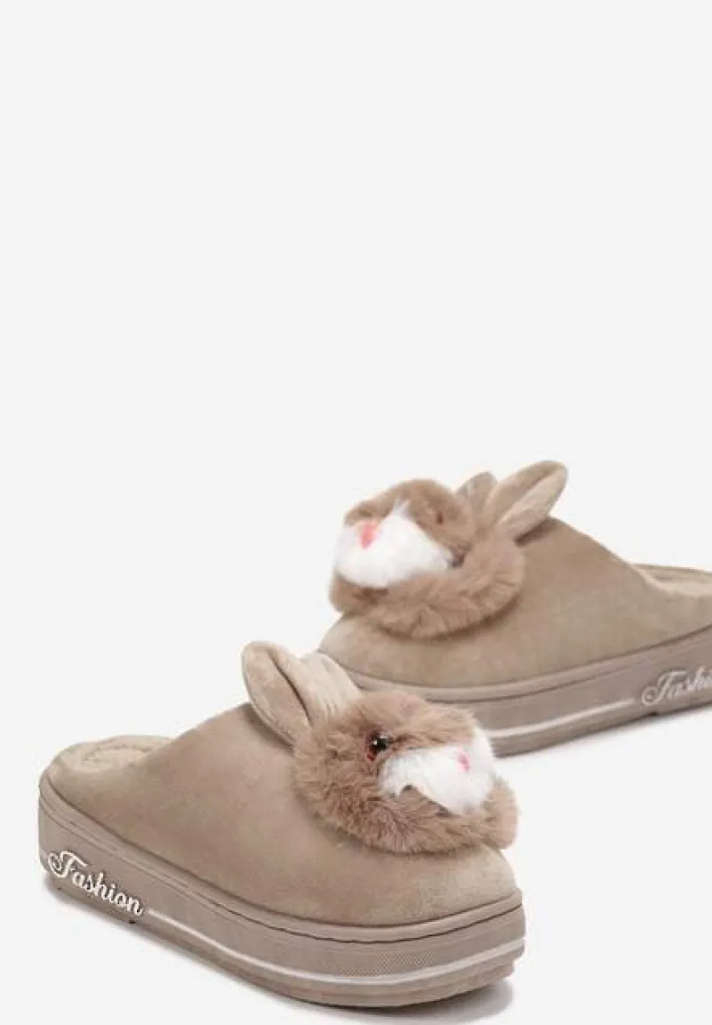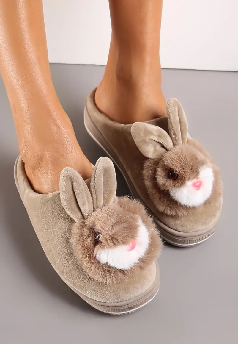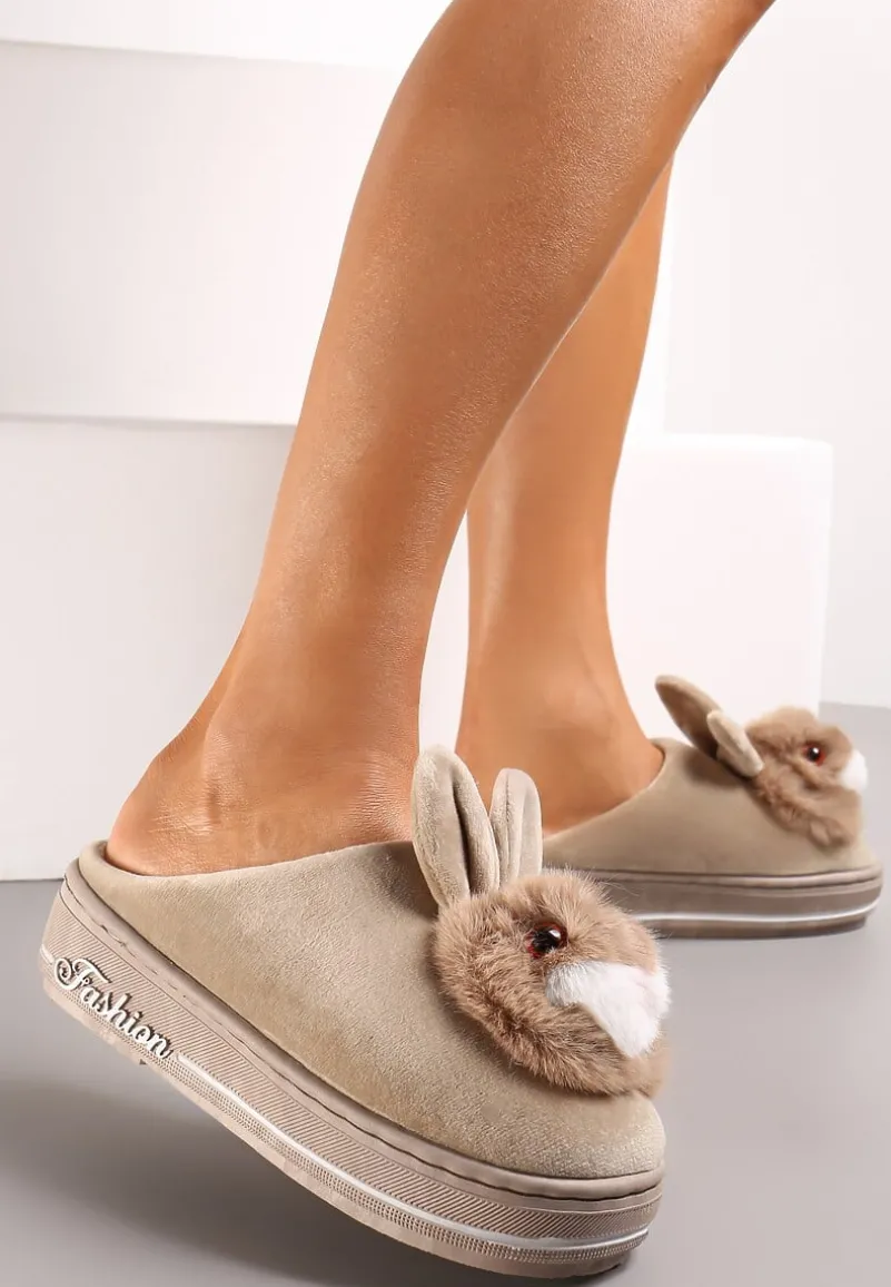 Kapcie Pisces na grubej, płaskiej podeszwie. Z przodu aplikacja 3D w kształcie głowy króliczka. To idealny prezent dla kogoś, kto ceni sobie wygodę i oryginalność.