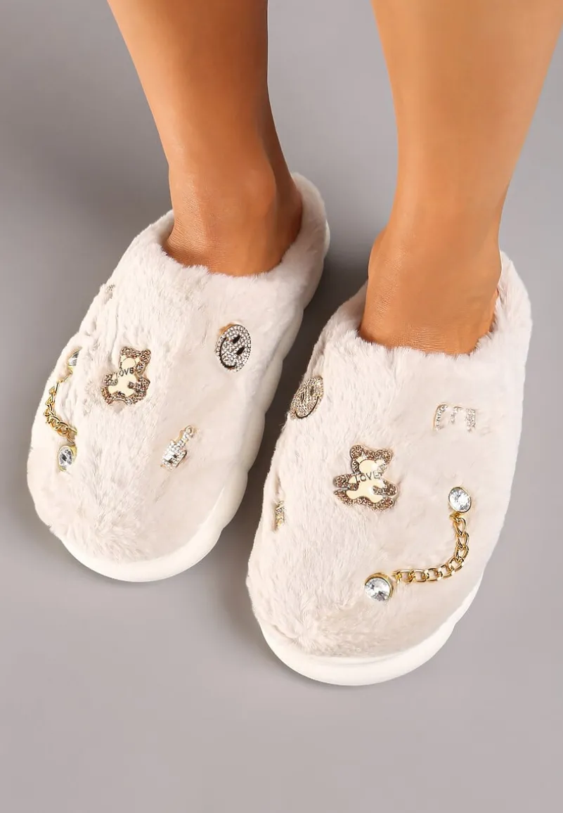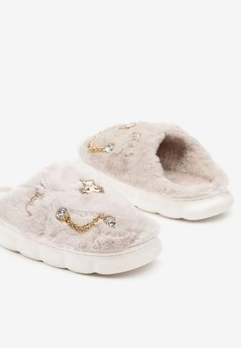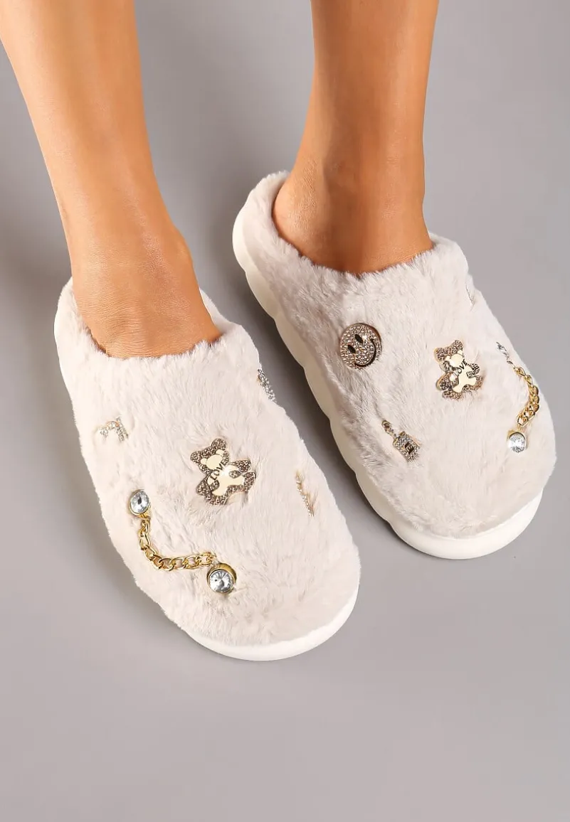 Przekształć swoje domowe obuwie w dzieło sztuki dzięki Kapciom Merivies. Płaska podeszwa zapewnia maksymalny stabilność na co dzień. Są idealne do stylizacji domowego cozy look, w którym królują legginsy i oversize’owy sweter, ale równie dobrze sprawdzą się podczas przyjęcia w ogródku, kiedy zechcesz olśnić blaskiem swojego stroju. Błyszczące aplikacje i cyrkonie dodają kapciom Merivies unikalnego charakteru, który uwydatni Twoją miłość do modowych detali.