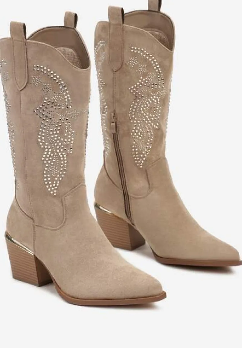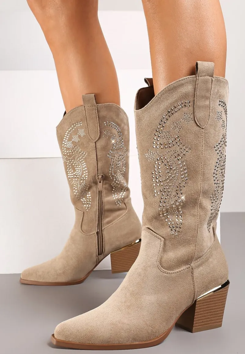 Kozaki Kowbojki Tialethe to kwintesencja najnowszych trendów w miejskim wydaniu. Stabilny obcas typu stożek zdobiony metalowym akcentem zapewnia elegancję i wygodę, a ocieplana wyściółka gwarantuje komfort nawet w chłodniejsze dni. Ozdobny haft na cholewce dodaje charakteru, a delikatne szpiczaste noski to gwarancja stylu. Buty posiadają praktyczne zapięcie na suwak. Będą idealnym wyborem na szykowne wyjście lub spontaniczne spotkanie z przyjaciółmi. Stwórz niezapomniane stylizacje, łącząc je z jeansami i luźnym swetrem na co dzień lub z sukienką maxi i skórzaną kurtką na wieczorną imprezę.