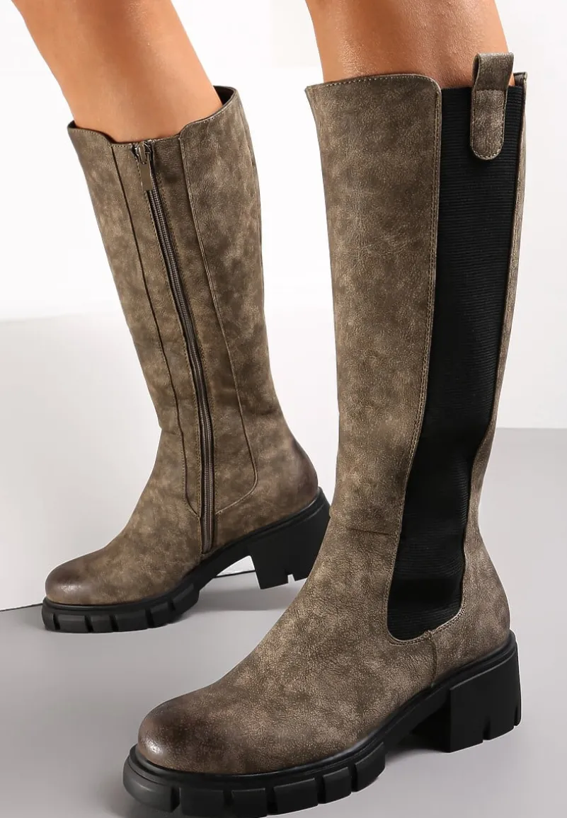 Kozaki Kluzonia na płaskiej podeszwie z ozdobną, elastyczną wstawką. To unikalny dodatek, który doda Twojej stylizacji mocnego charakteru.