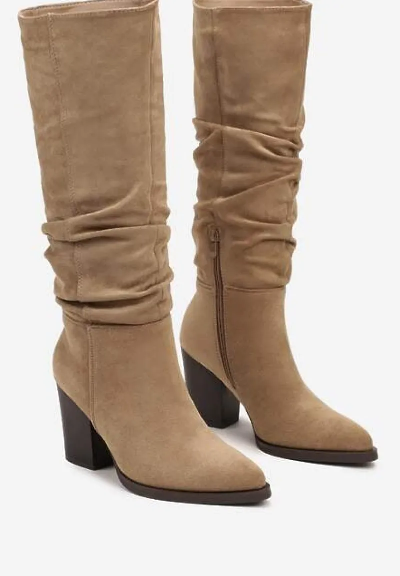 Kozaki Railaria to must-have w szafie każdej fanki modowych rewolucji. Wyprofilowany słupek gwarantuje stabilność i dodaje klasy, a marszczenia przy cholewce podkreślają niebanalny styl. Przytulne ocieplenie zapewni komfort nawet w chłodniejsze dni. Klasyczny szpiczasty nosek i subtelne zapięcie na suwak czynią te kozaki eleganckim wyborem niezależnie od okazji. Wybierz je, by stworzyć outfit z charakterem do pracy w połączeniu z dopasowaną spódnicą i zwiewną koszulą lub uzupełnij nimi wieczorową kreację z elegancką sukienką i wełnianym płaszczem.