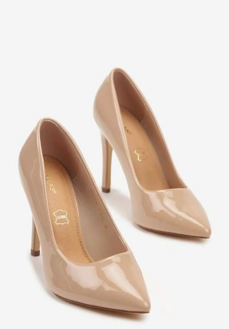 Ciemnobeżowe Lakierowane Eleganckie Szpilki Vices z Wkładką ze Skóry Naturalnej Innalora