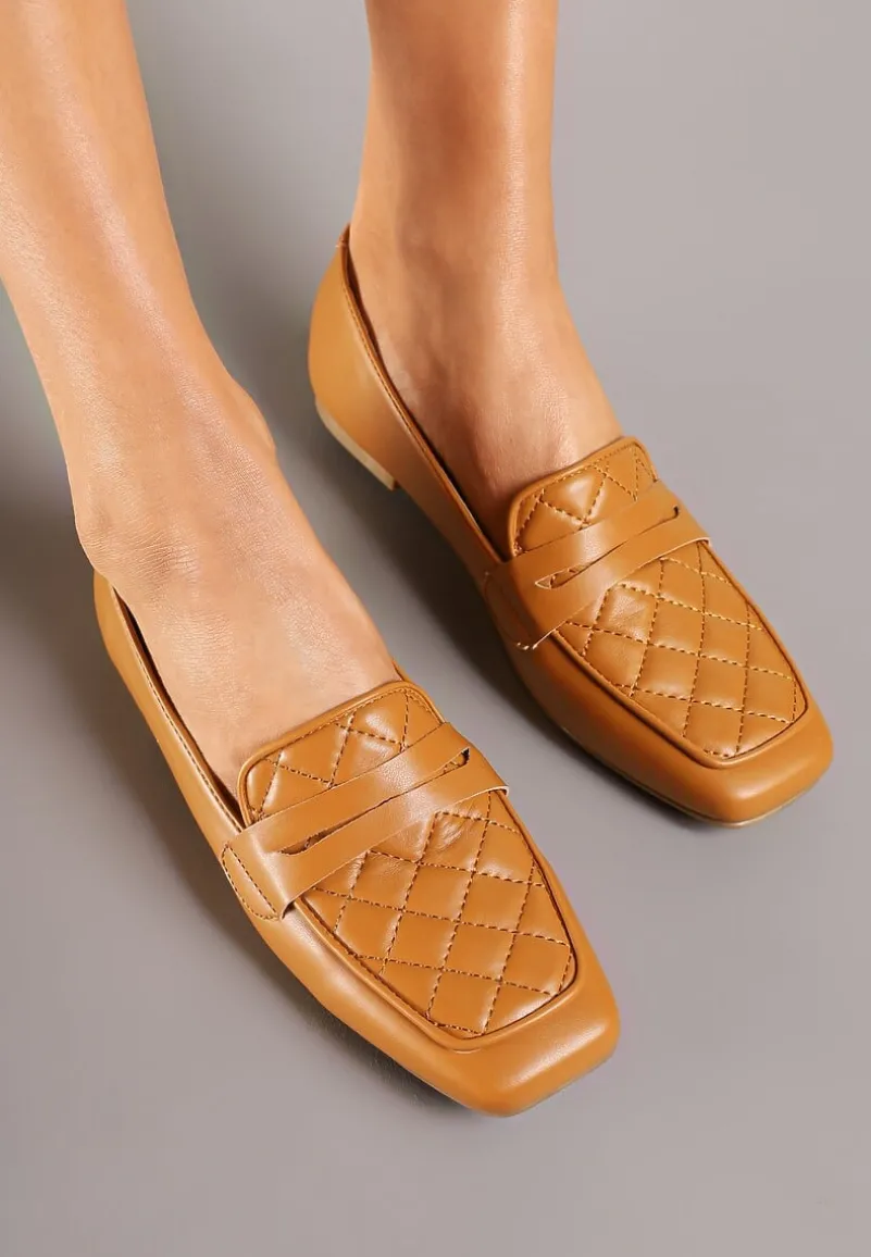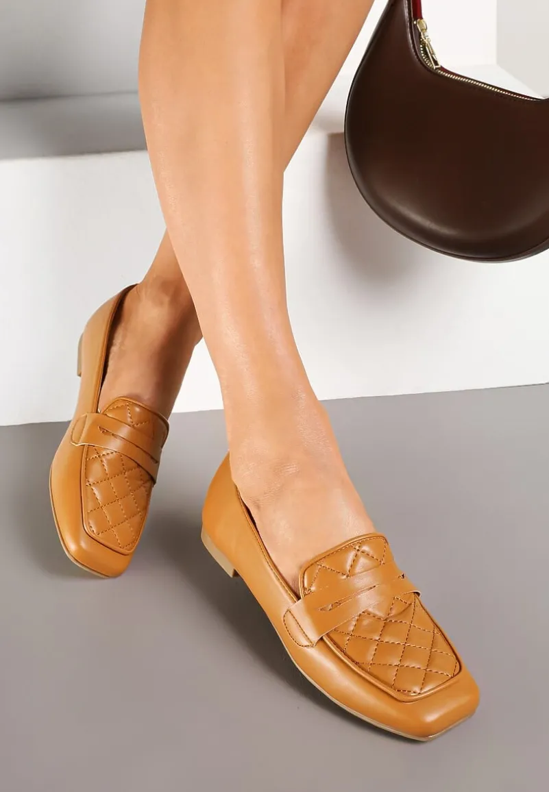 Mokasyny Sireviane wsuwane, z cholewką odkrywającą kostkę. Z kwadratowym noskiem udekorowanym lamówką. U góry znajduje się pikowana wstawka w romby. Na płaskiej podeszwie. Wykonane z ekoskóry. Zestaw je z cygaretkami i półformalną bluzką, a stworzysz zgrany outfit