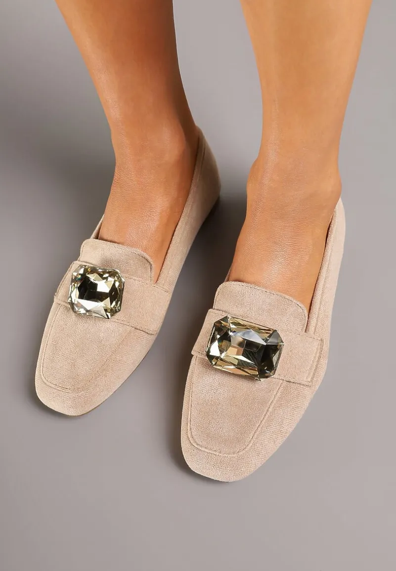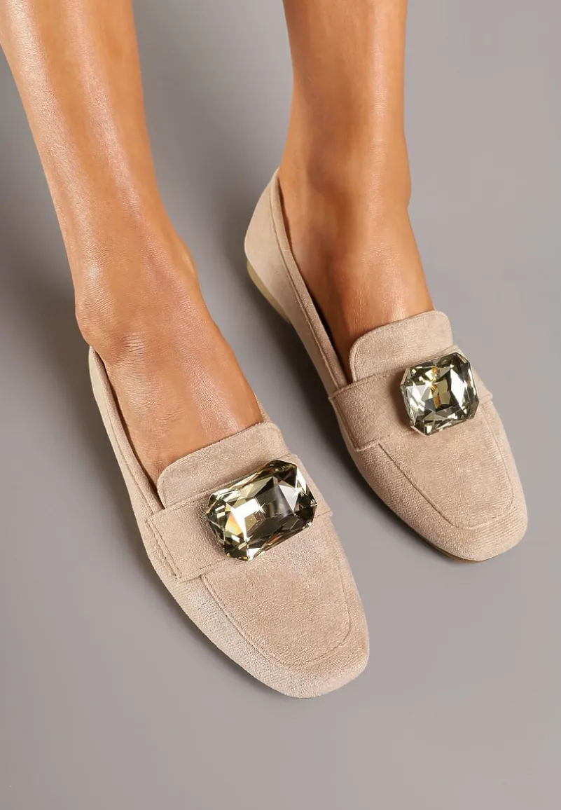 Mokasyny Zidanira z ekozamszu z dużą cyrkoniową aplikacją to połączenie klasyki z nowoczesnymi dodatkami, które przyciągną wzrok każdej fashionistki. Typowy płaski obcas i kwadratowy nosek sprawiają, że są doskonałym wyborem na każdą okazję — od codziennych spacerów po mieście po eleganckie spotkania. Dzięki brakowi zapięcia włożysz je w mgnieniu oka, co czyni je wygodnym i stylowym dodatkiem jednocześnie. Na co dzień zestaw je z jeansami i luźną bluzką, a na wieczorne wyjście wybierz elegancki kombinezon i minimalistyczną biżuterię, by dodać sobie szyku.