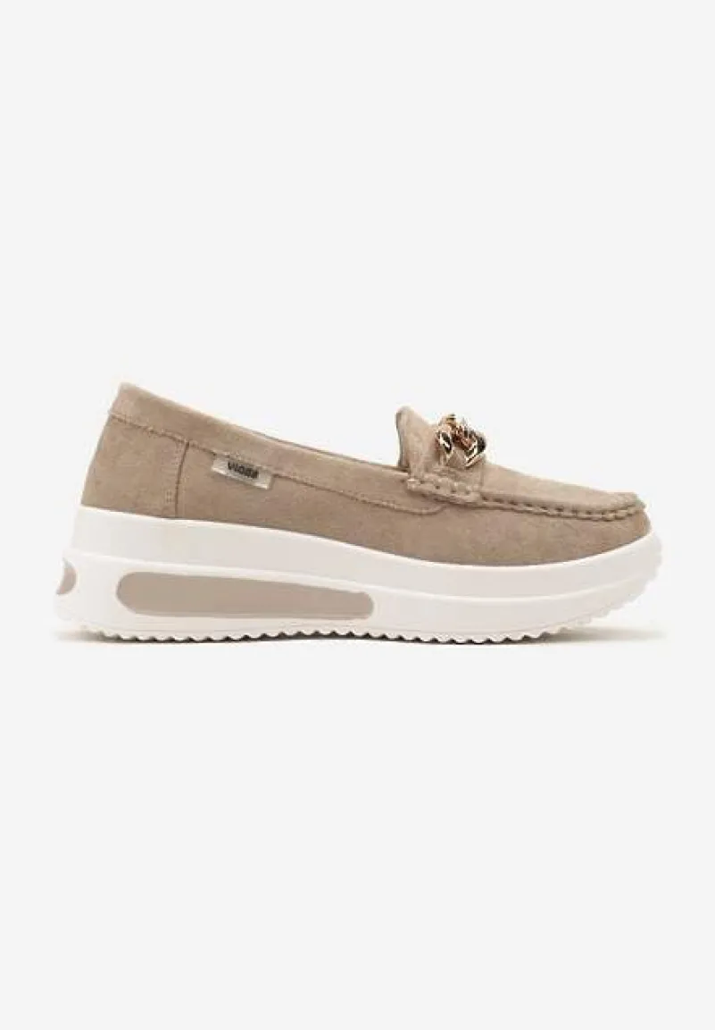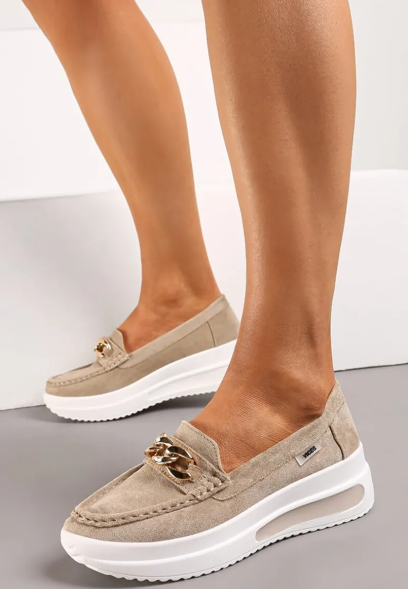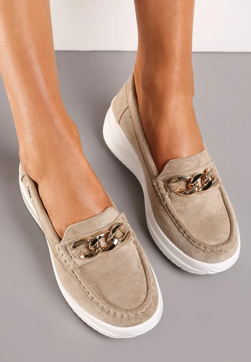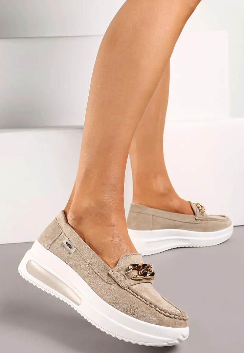 Mokasyny z Łańcuszkiem na Wysokiej Platformie Iracana to kwintesencja stylu. Platforma zapewni stabilność podczas długich dni. Zaokrąglony nosek buta dodaje klasy, a brak sznurowania to gwarancja szybkiego zakładania. Wiosna czy jesień – te mokasyny to uniwersalny wybór do wielu stylizacji. Zrób wrażenie, łącząc je z modnymi kulotami i oversize’owym swetrem na co dzień lub z eleganckimi cygaretkami i minimalistycznym topem na wieczorne wyjście z przyjaciółkami.