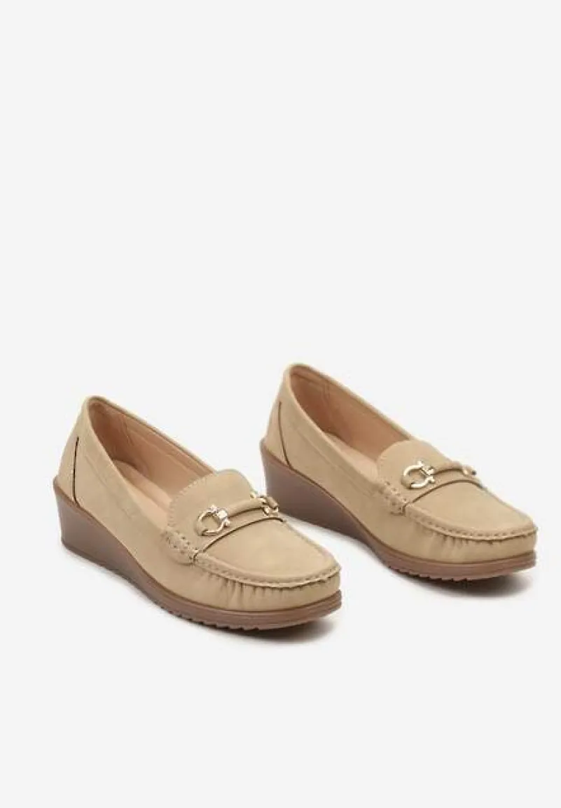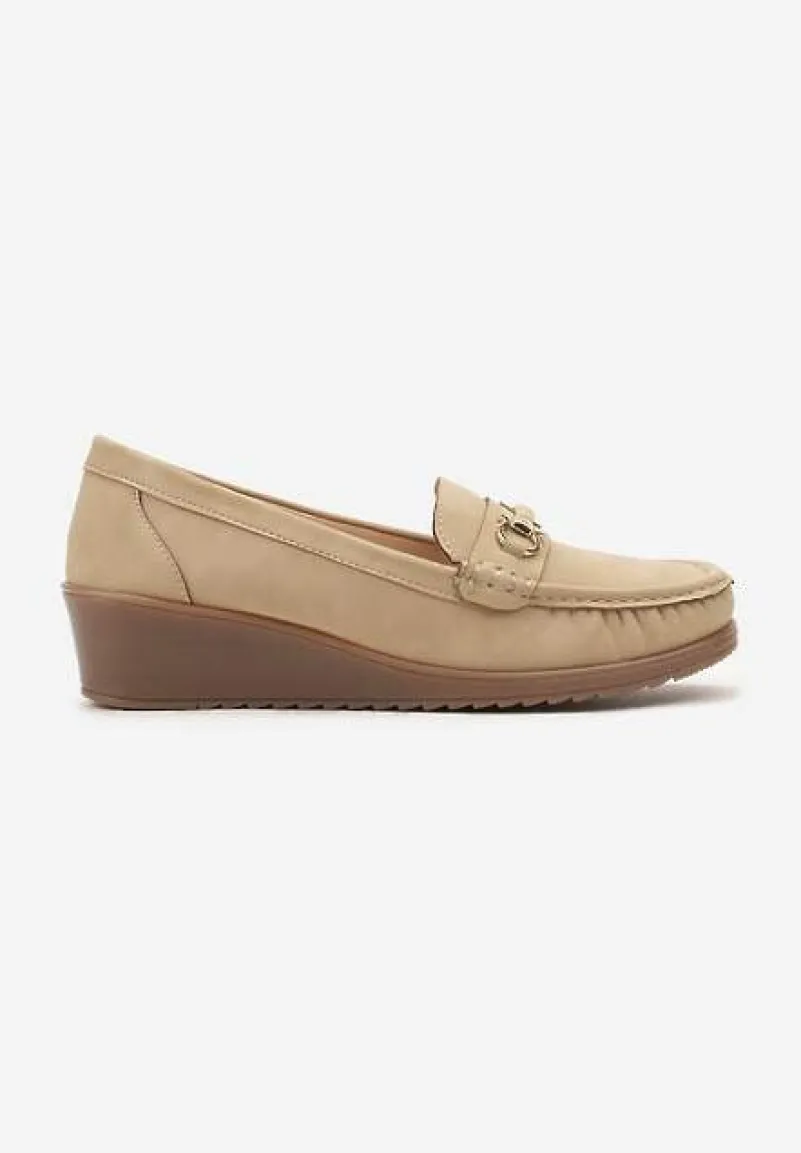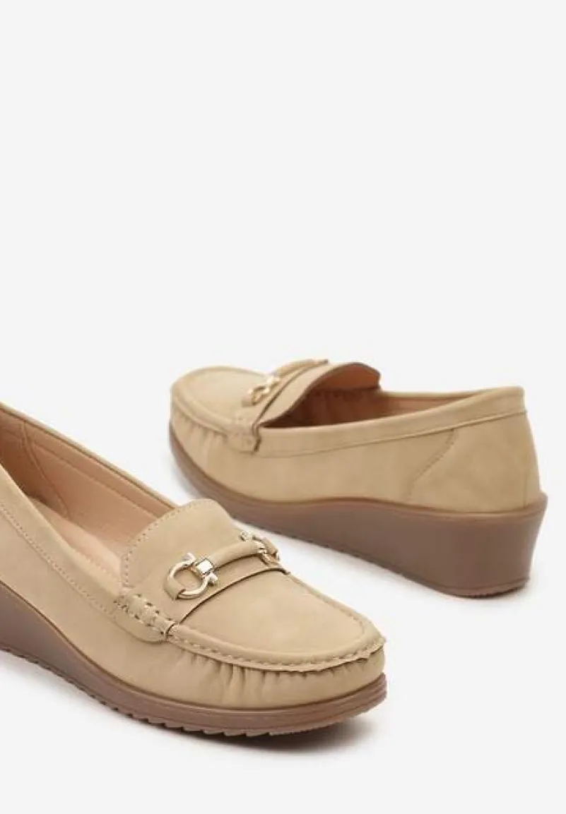 Półbuty mokasyny na koturnie Dalisha to idealna propozycja dla kobiet ceniących styl. Zaokrąglony nosek buta nadaje klasyczny look, który świetnie skomponuje się z każdym outfitem. Metaliczna ozdoba dodaje świeżego akcentu, nawiązując do najnowszych trendów. Do codziennego stylu dobierz je z ulubionymi jeansami i swetrem w pastelowych barwach, by stworzyć harmonijną całość, idealną na spotkania ze znajomymi. Natomiast na formalne okazje połącz je z prostą sukienką i dopasowanym żakietem, eksponując elegancję z nutą nonszalancji.