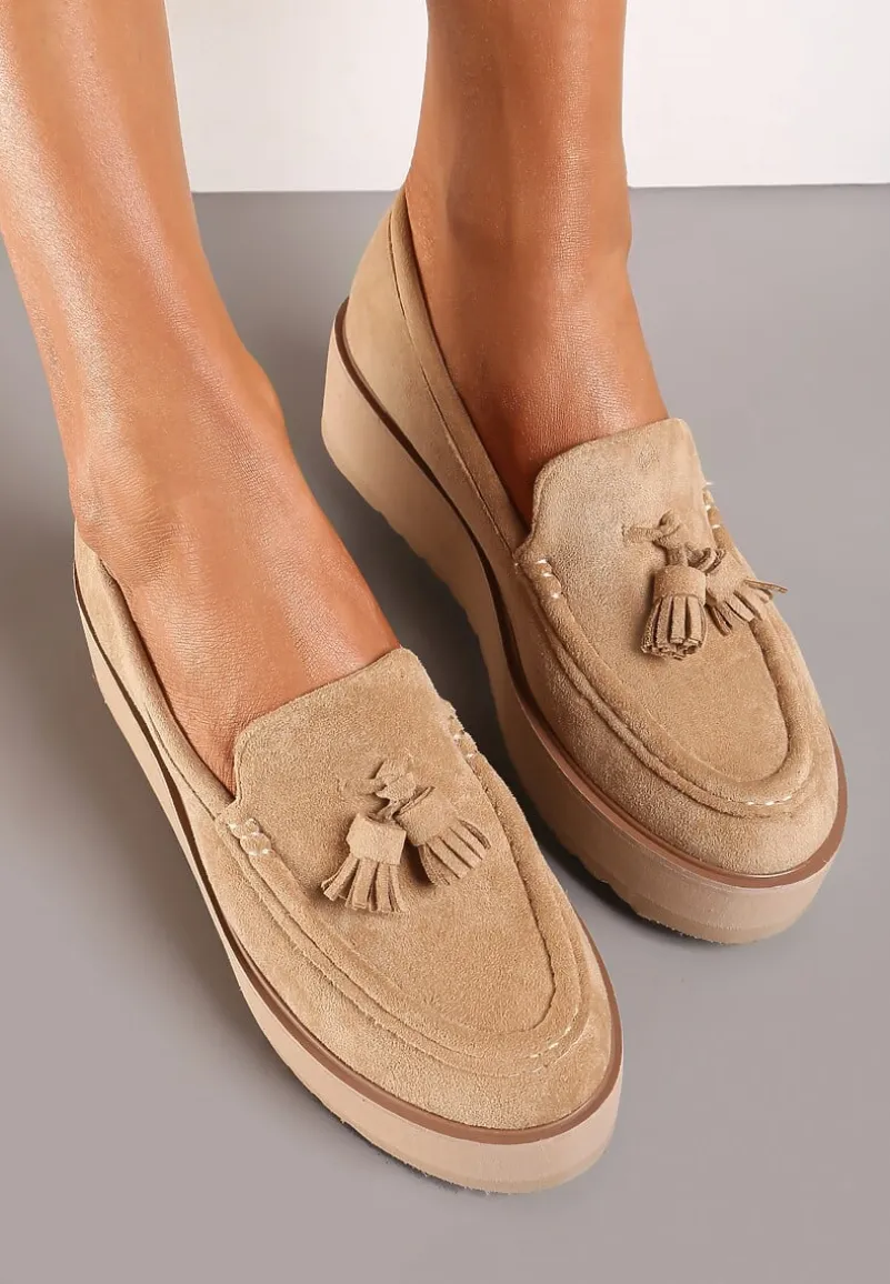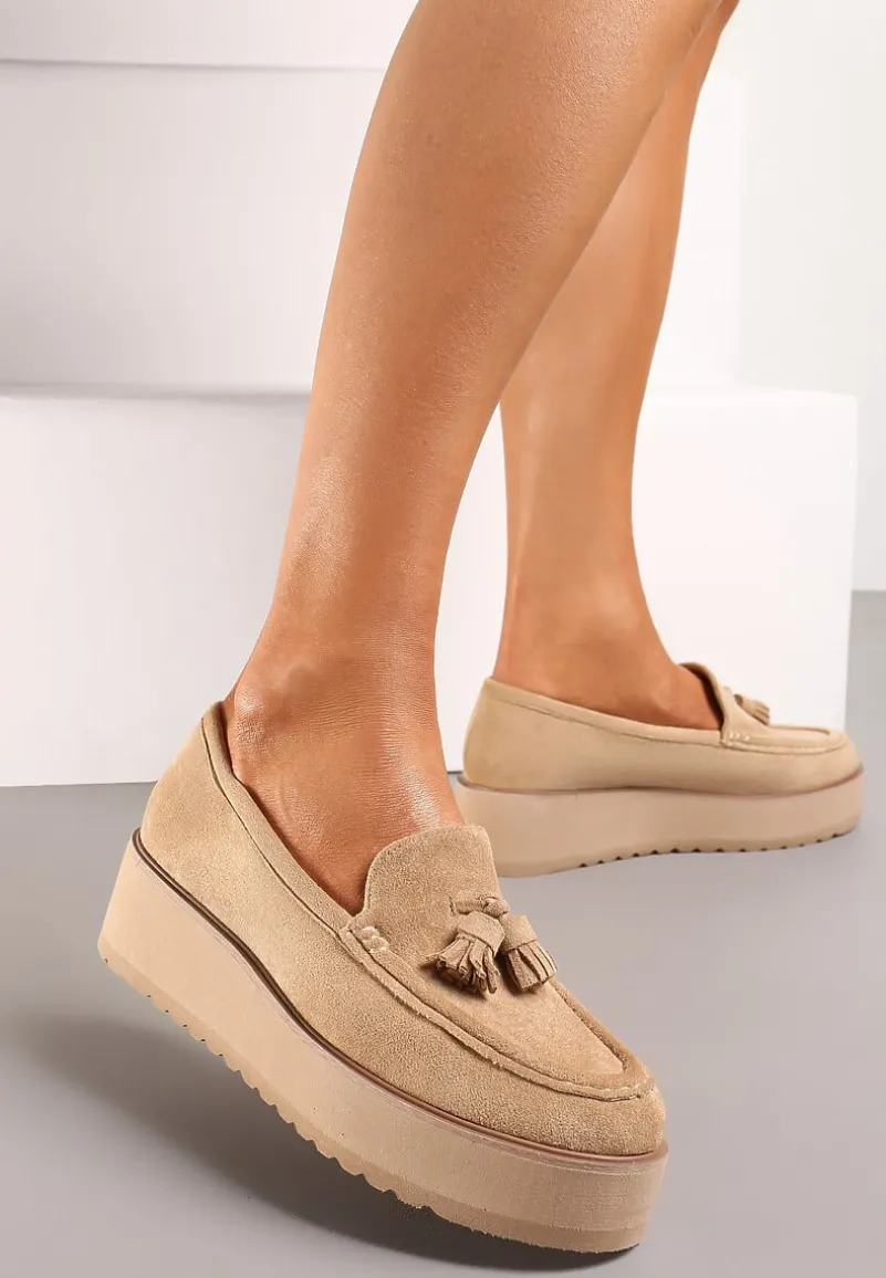 Wygodne półbuty Hiela na niskiej platformie z ozdobnymi frędzlami z przodu, będą pięknym uzupełnieniem każdego wiosennego outfitu!