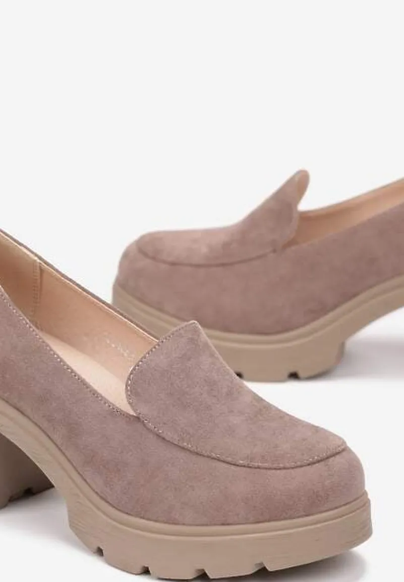 Półbuty Neona o fasonie mokasynów na obcasie z platformą i bieżnikiem. Wewnątrz skórzana wkładka, cholewka z ekoskóry.